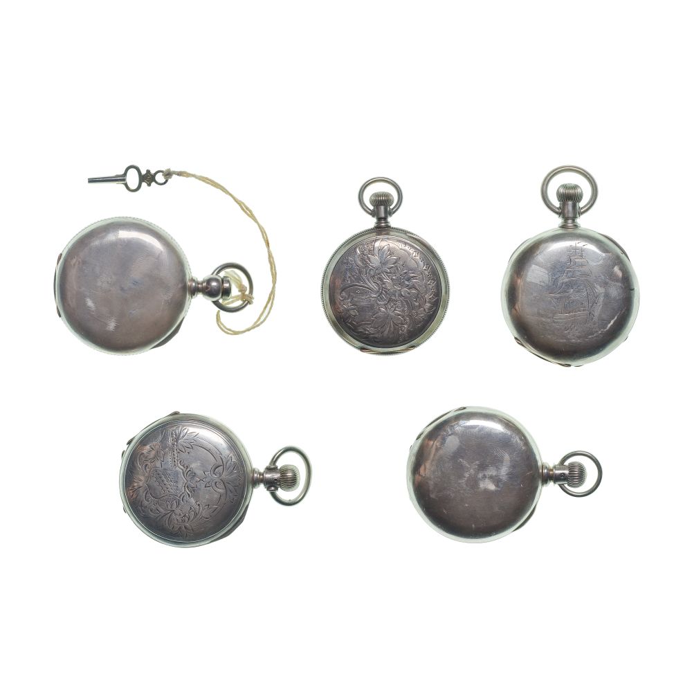 (5) items including (3) hunter case serial #15395102, #2416781 (having key) and #86000730 as well as (2) open face serial #14378891 and #2349550 (all marked “coin”)