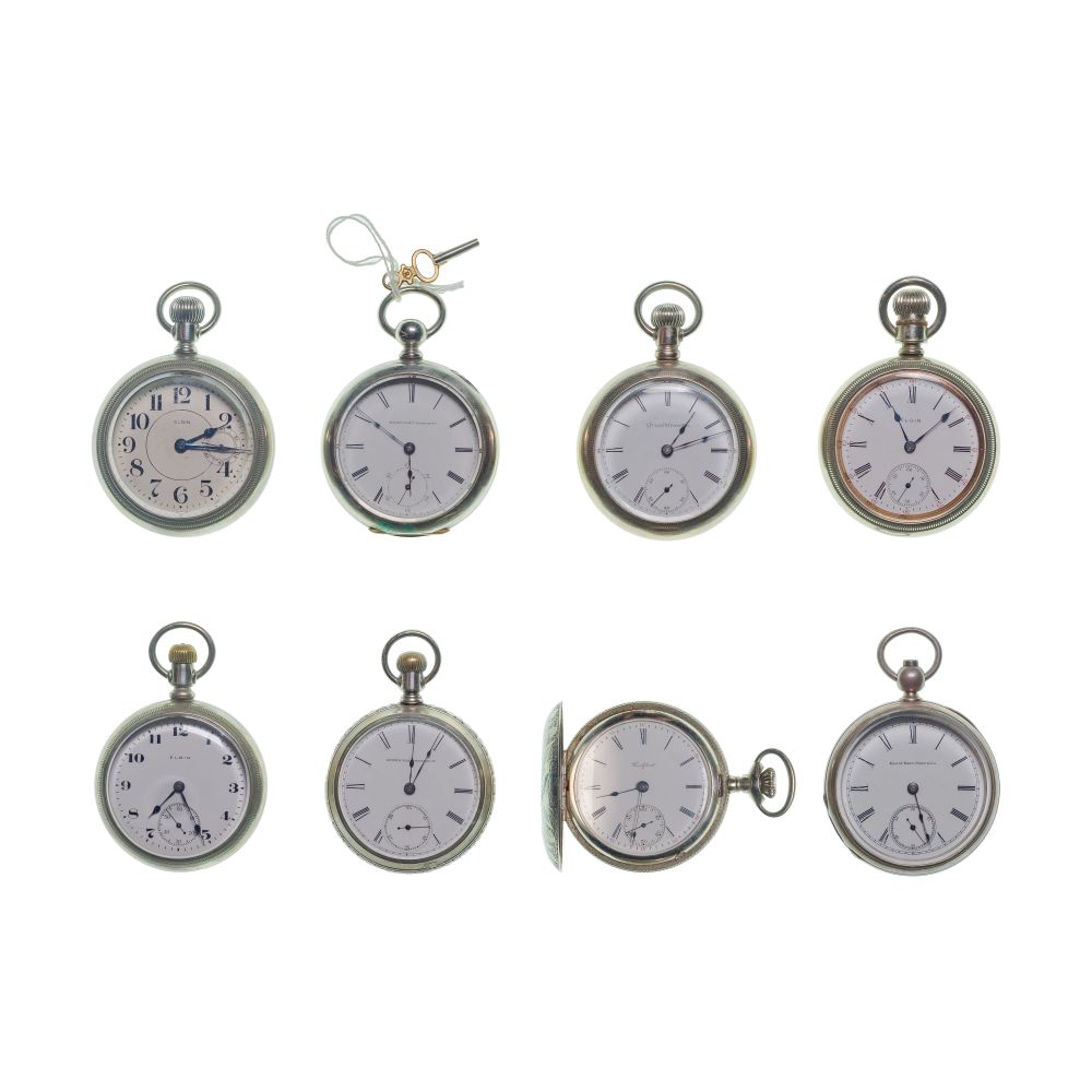 (8) items including (6) Elgin open face, one having key, an open face Atlas and hunter case Rockford