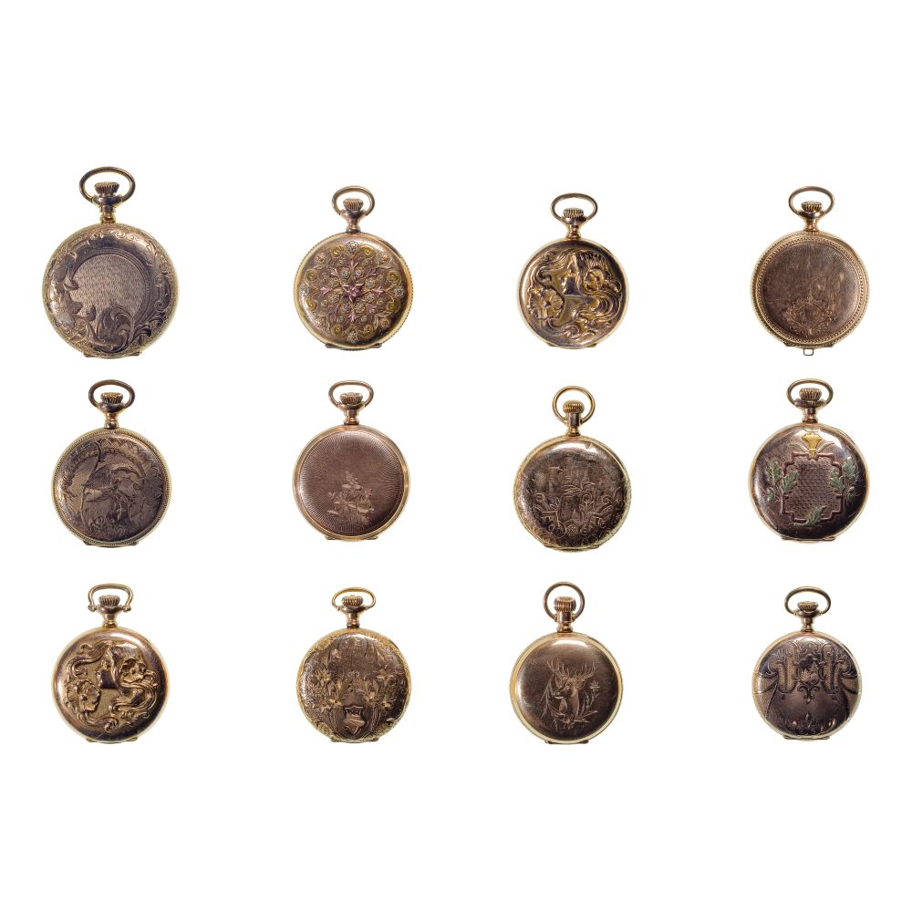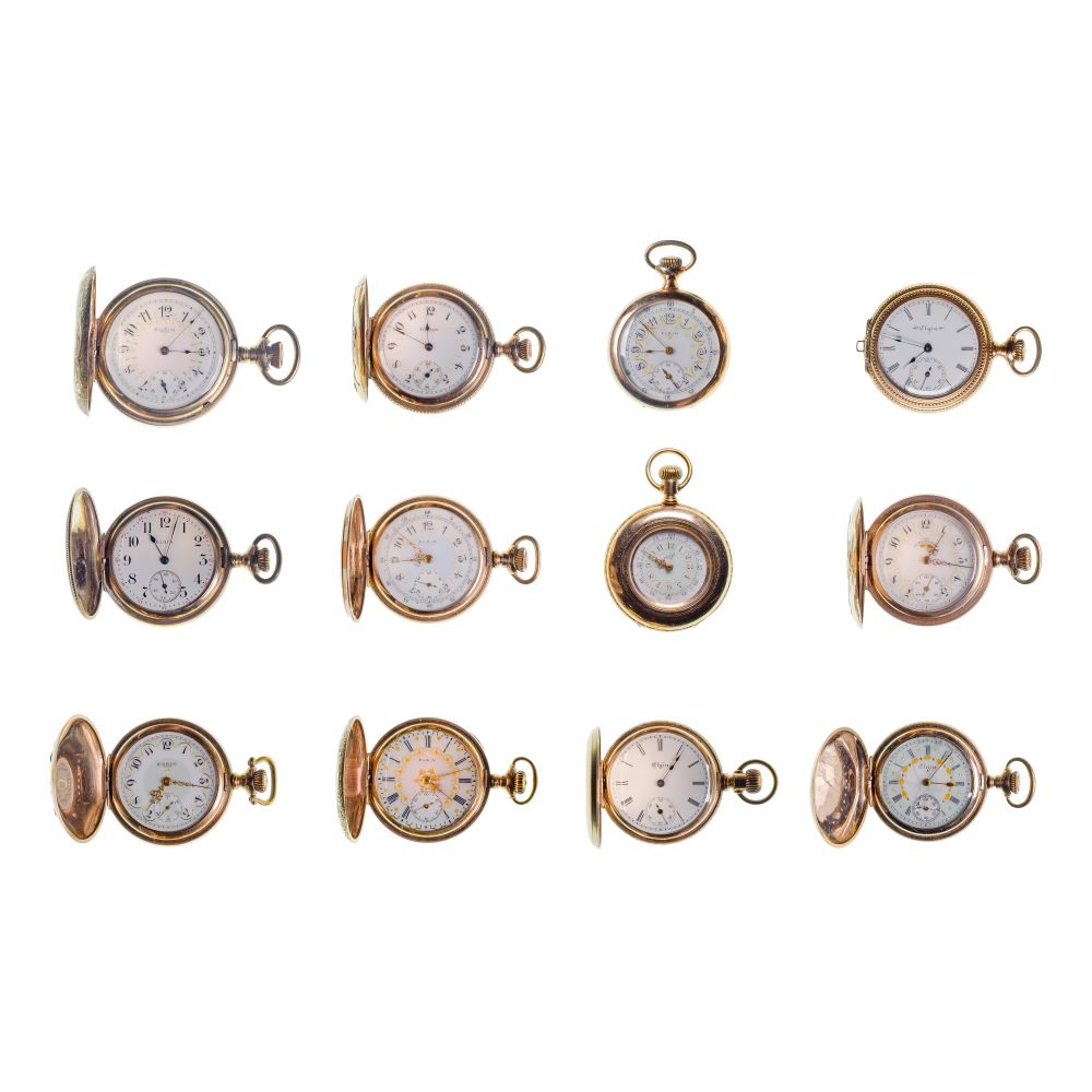 (12) items including (9) hunter case and (3) open face, all having gold filled cases