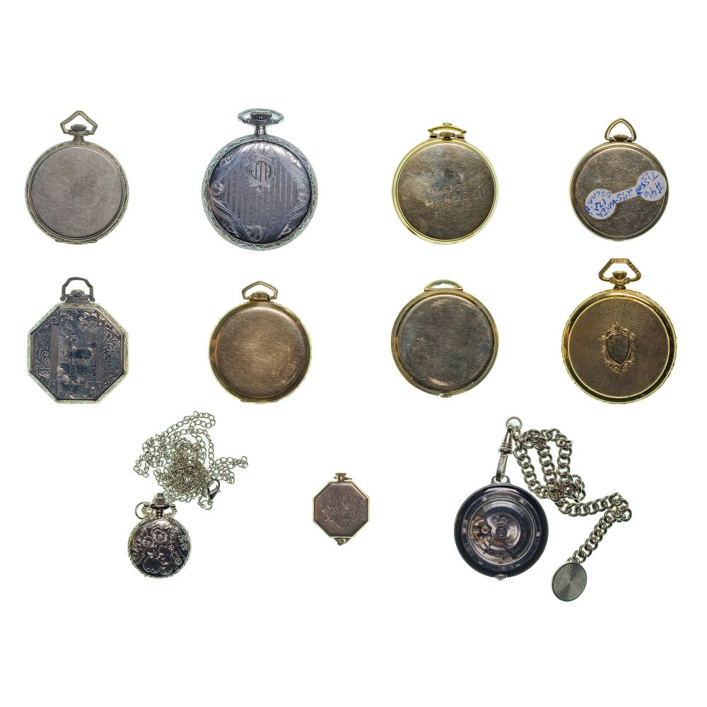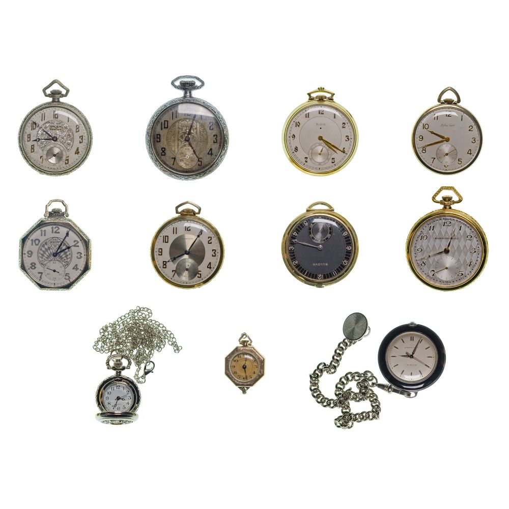 (11) items including open and hunter style, from makers including Elgin, Mathey-Tissot, Gruen, Bailey, Banks and Biddle, Turler, Bulova and Waltham, some having fobs and chains