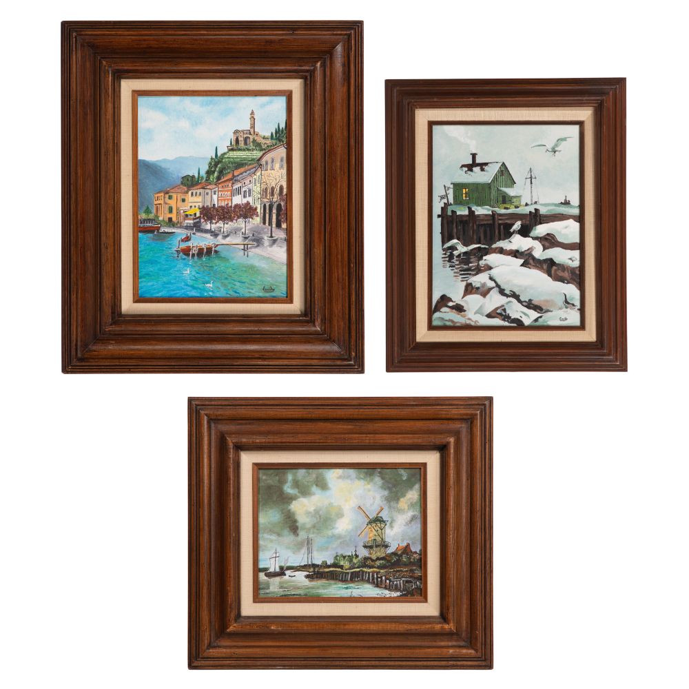(3) undated works, signed and depicting various landscapes, in wood frames