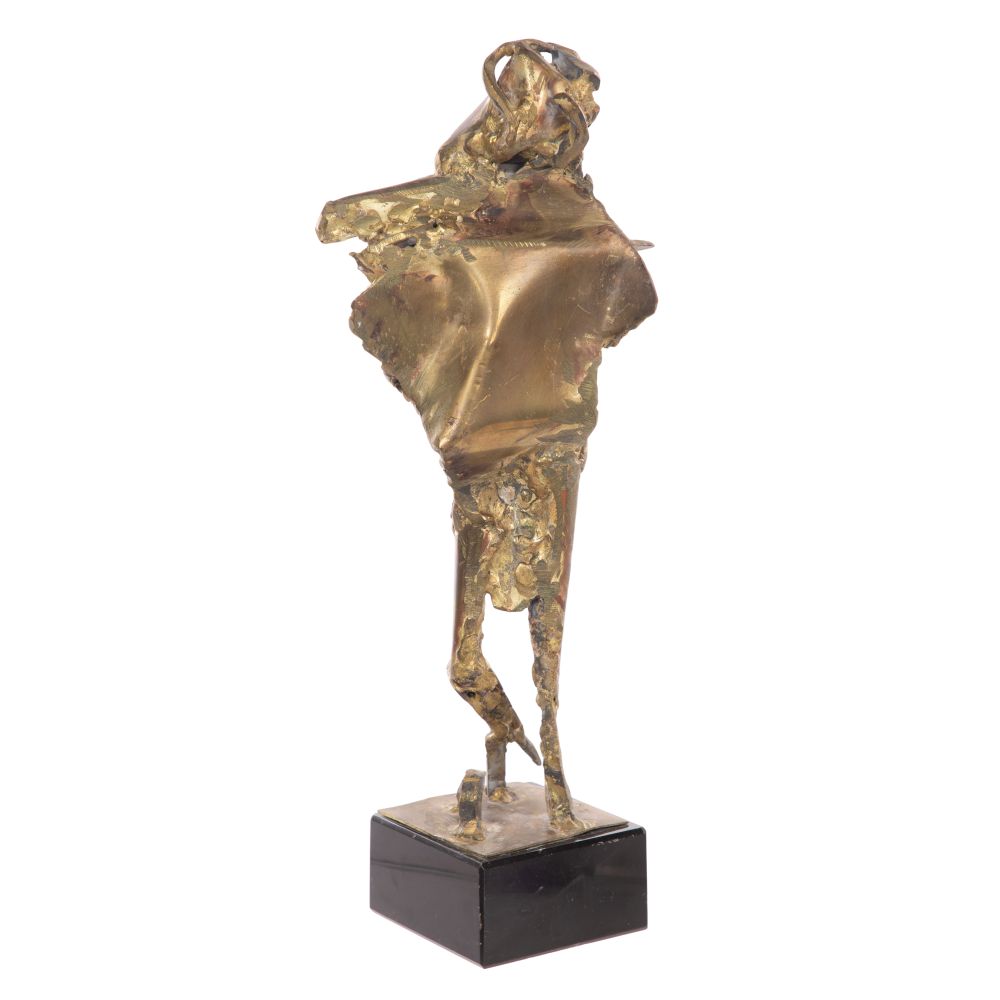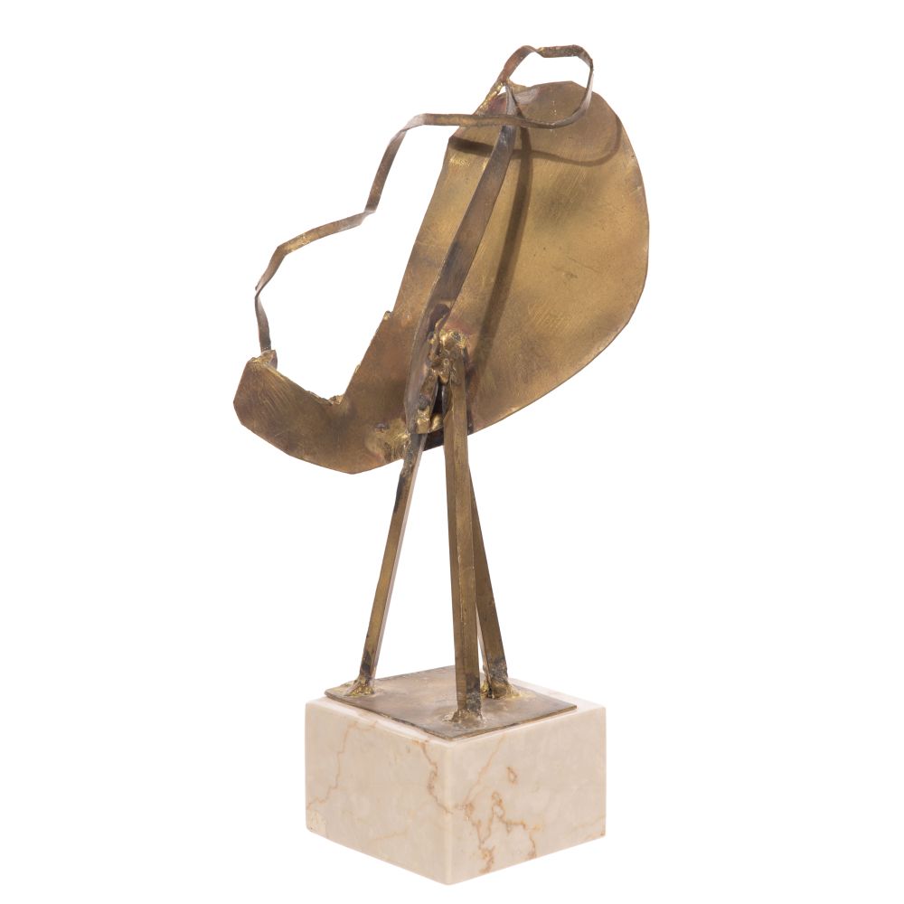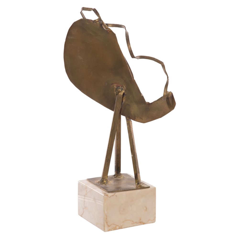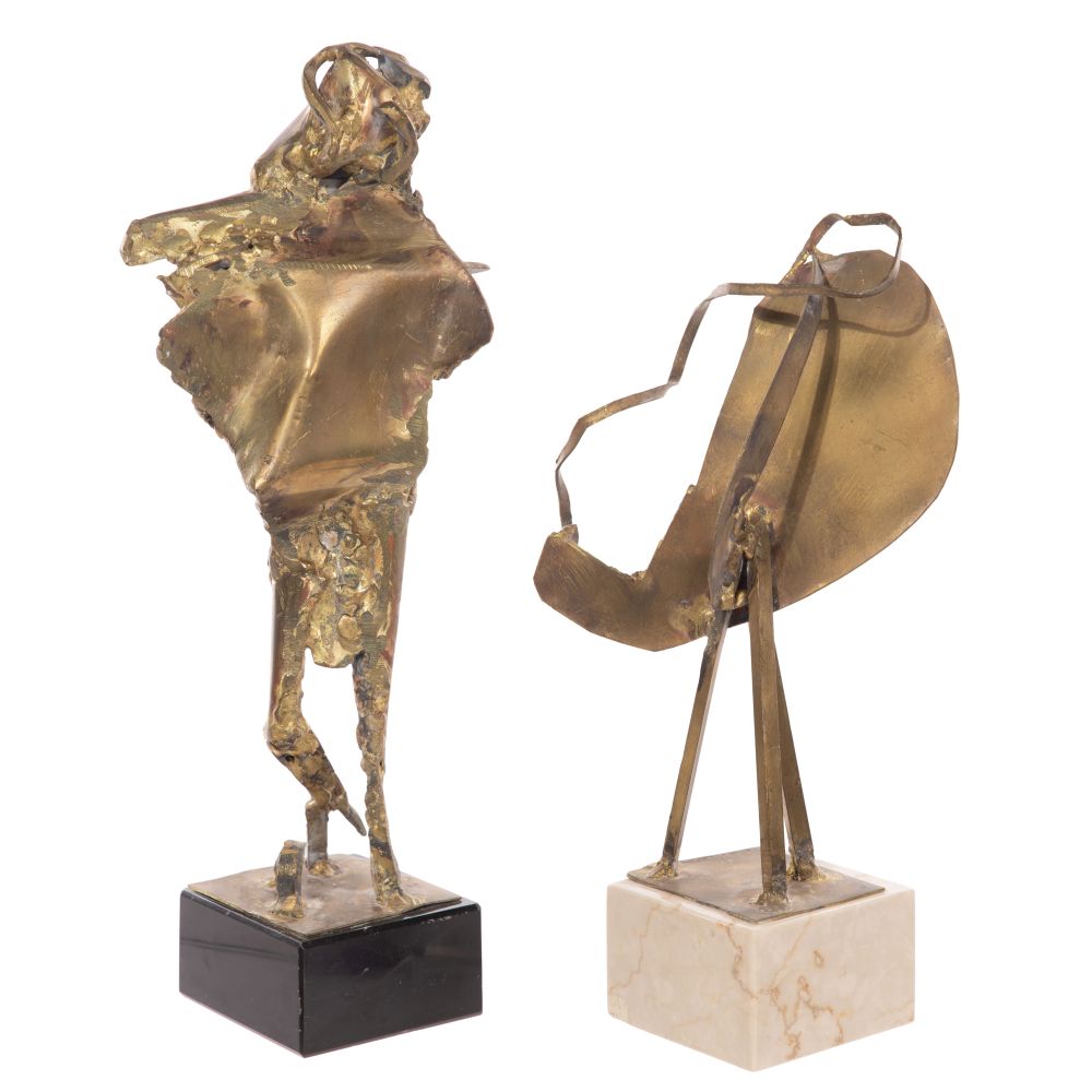 (2) items including an undated, signed, depicting a human form in abstract design on a metal base as well as an undated, signed, an abstract form on stone base