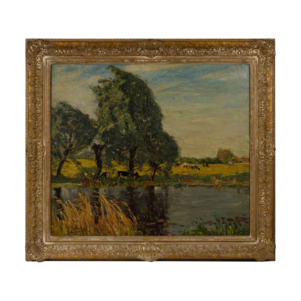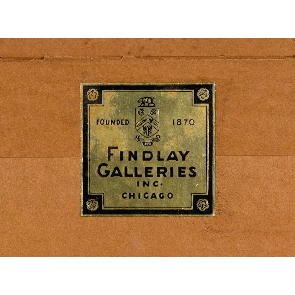 Undated, signed lower left, depicting a pastoral landscape in a gold-tone frame, retaining a Findlay Galleries Label verso