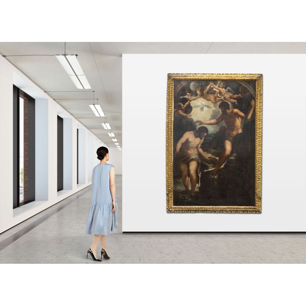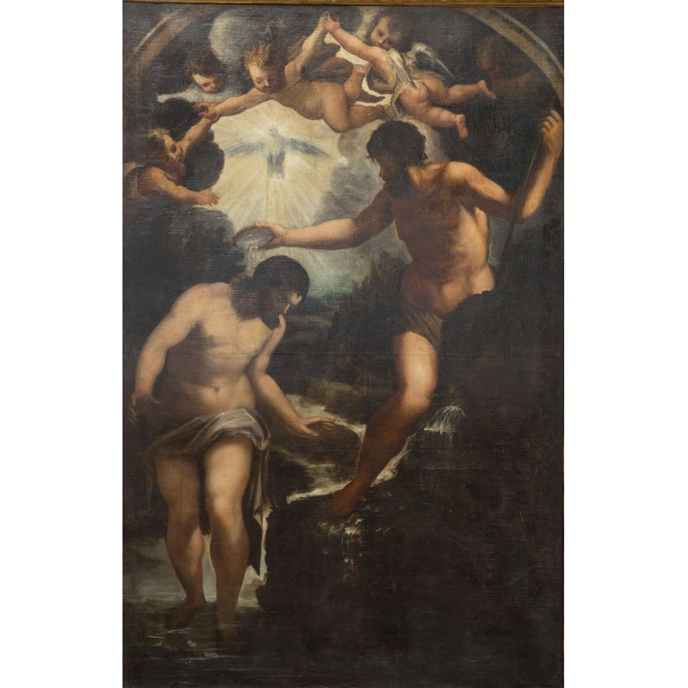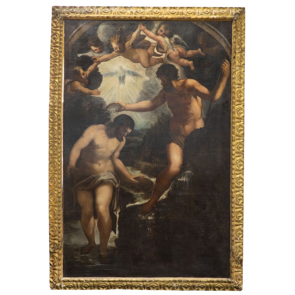 After Francesco Curia (Italian, 1538-1610) "The Baptism of Christ" Oil on Canvas