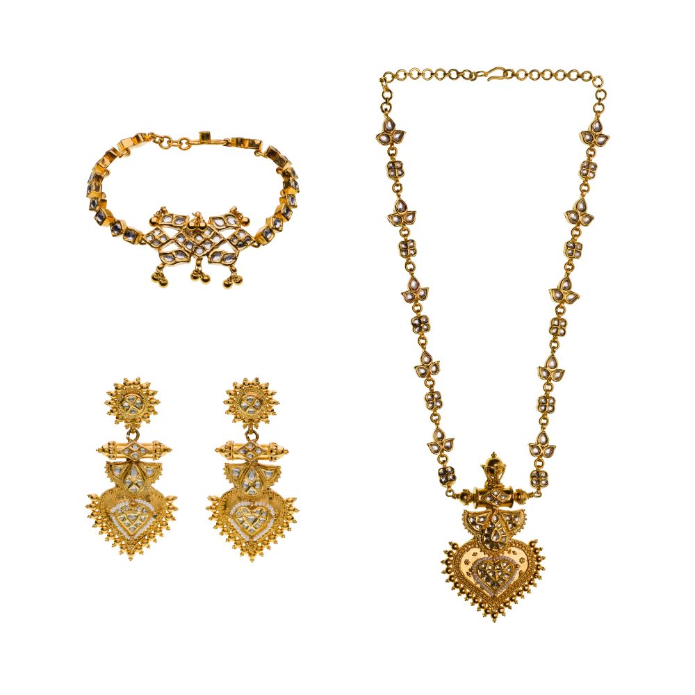22k Yellow Gold, Seed Pearl and White Topaz Jewelry Suite