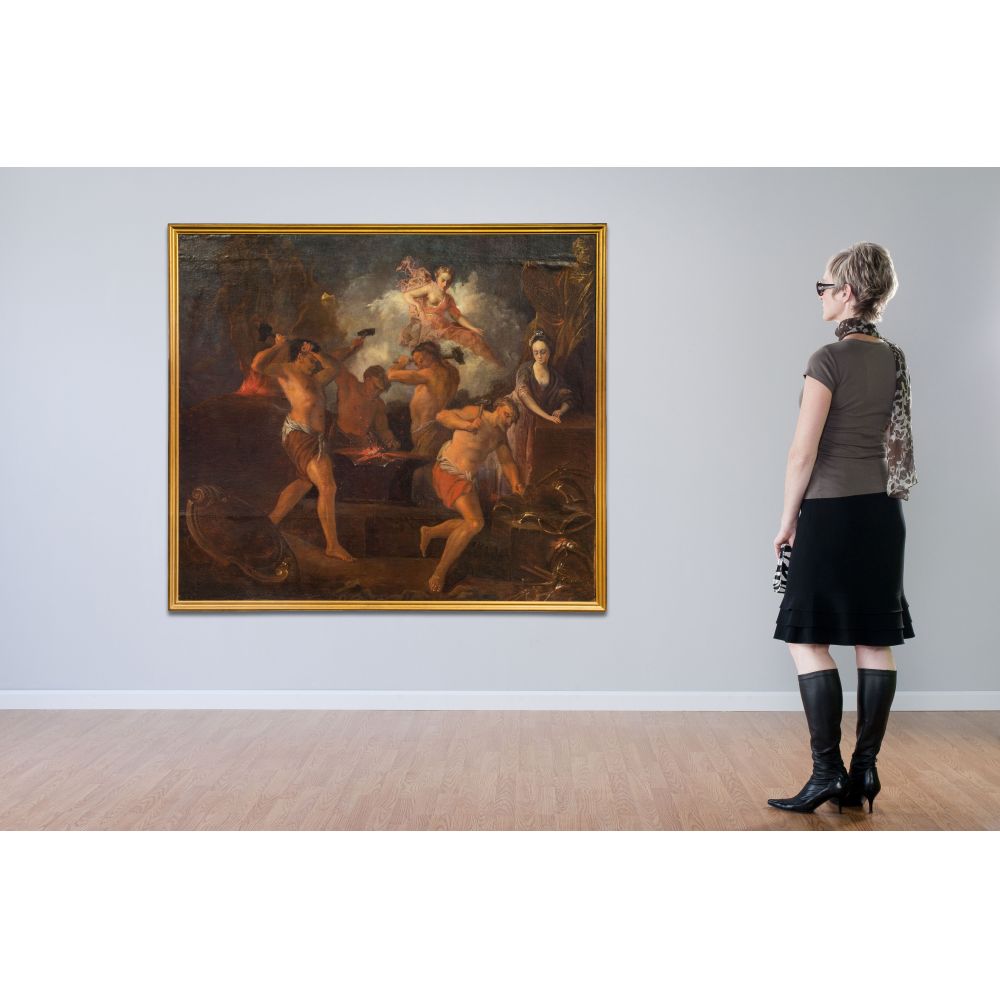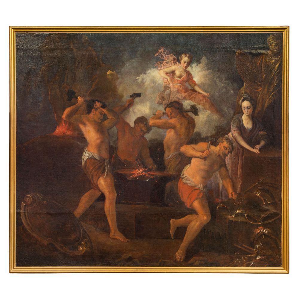 Undated, unsigned, depicting a scene in a forge, in wood frame