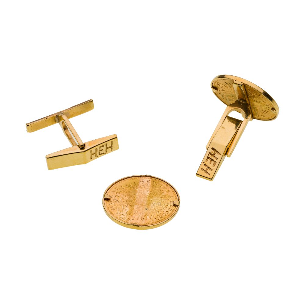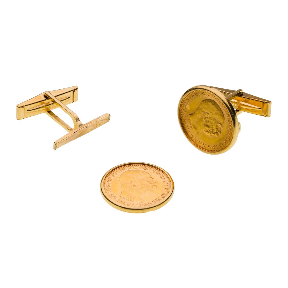A pair of Austrian Franc cufflinks (hardware marked “14k”, coin unmarked 22k)