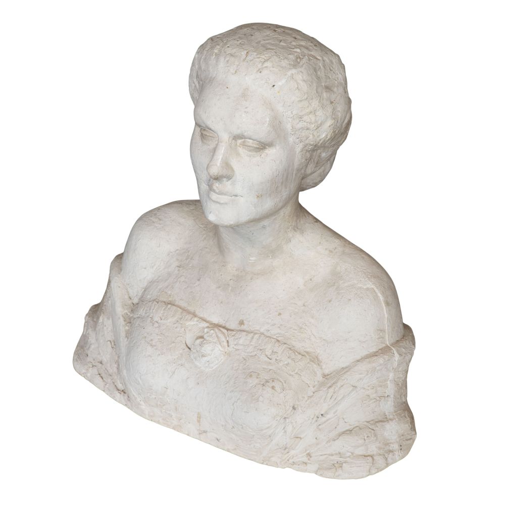 Condition: chips, cracks running along shoulders, piece of dress ornament broken off / missing, repairs on base back, color transfer marks on face, chips, cracks running along shoulders, piece of dress ornament broken off / missing, repairs on base back, color transfer marks on face