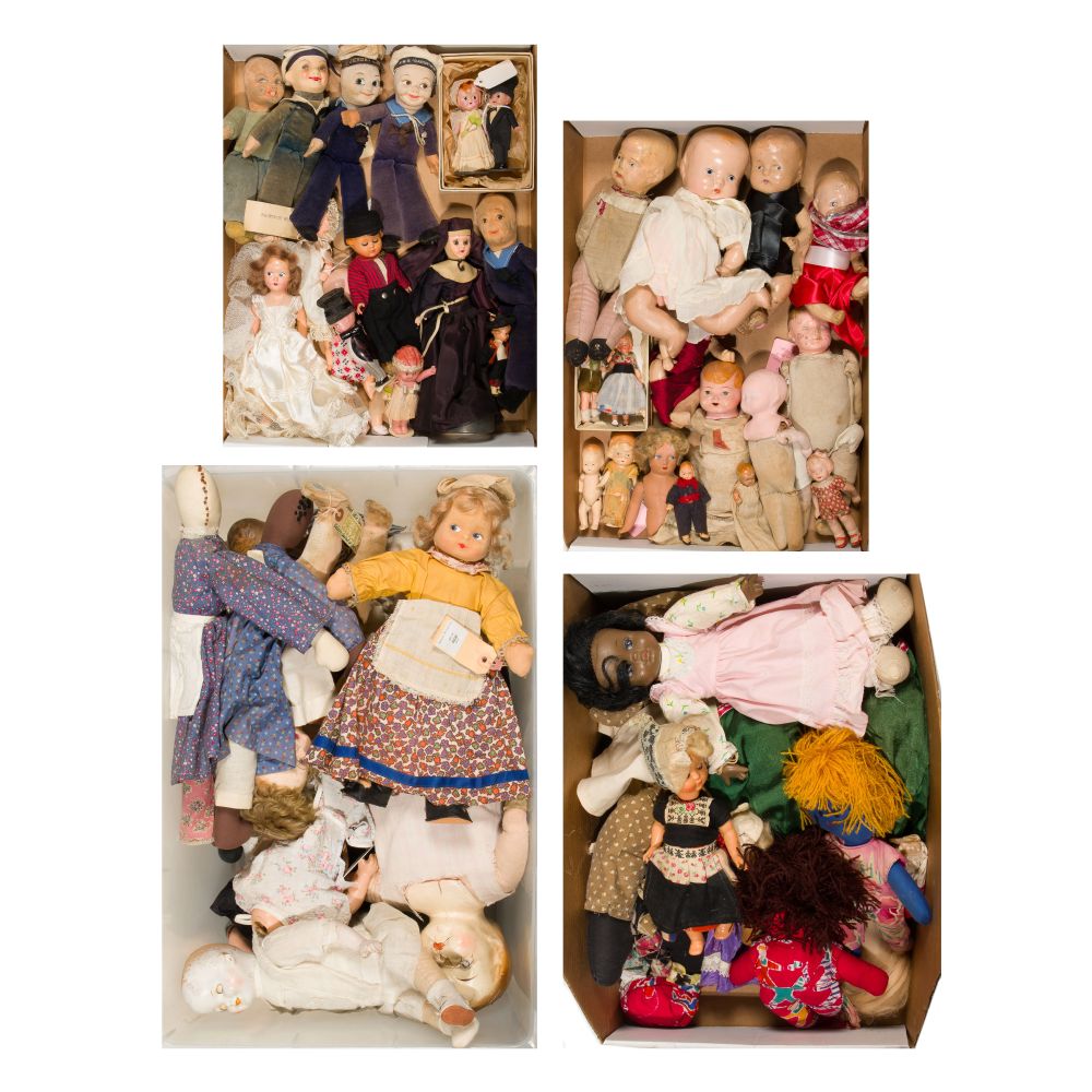 Approximately (35) dolls of various shapes, sizes, dress and materials including Wellings, Kewpie and handmade
