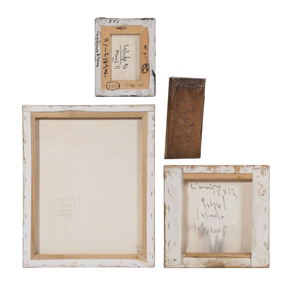 (4) signed works, dated to 1994, 2004, 2005 and 2008, mixed media of pigments, ash, dirt, plaster, fabric and recycled objects, (3) gallery wrapped, all having illegible titles verso