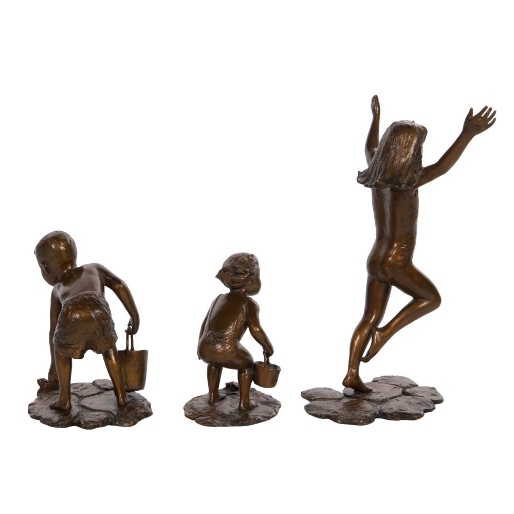 (3) undated items, each cast signed on base, depicting young children in a beach environment