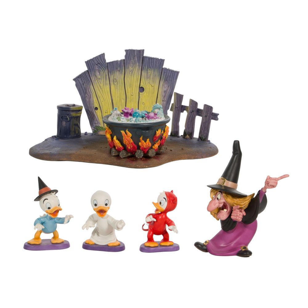 (5) items including a witch and Huey, Dewey and Louie figurines and a Trick or Treat base (resin), all having original boxes, all but base having COAs