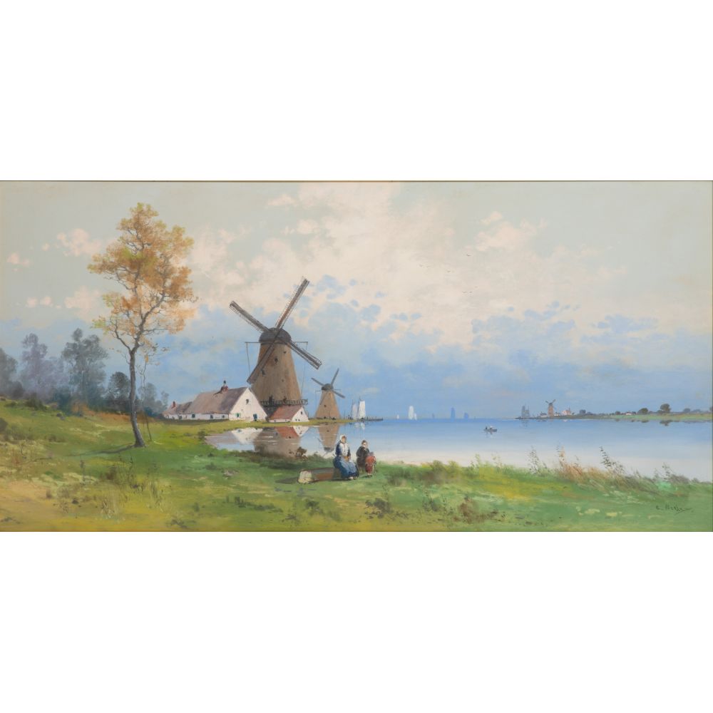 LOT #300 - C. Bialet (Continental School, 20th Century) “Windmills on the Noordendijk” Pastel on Paper