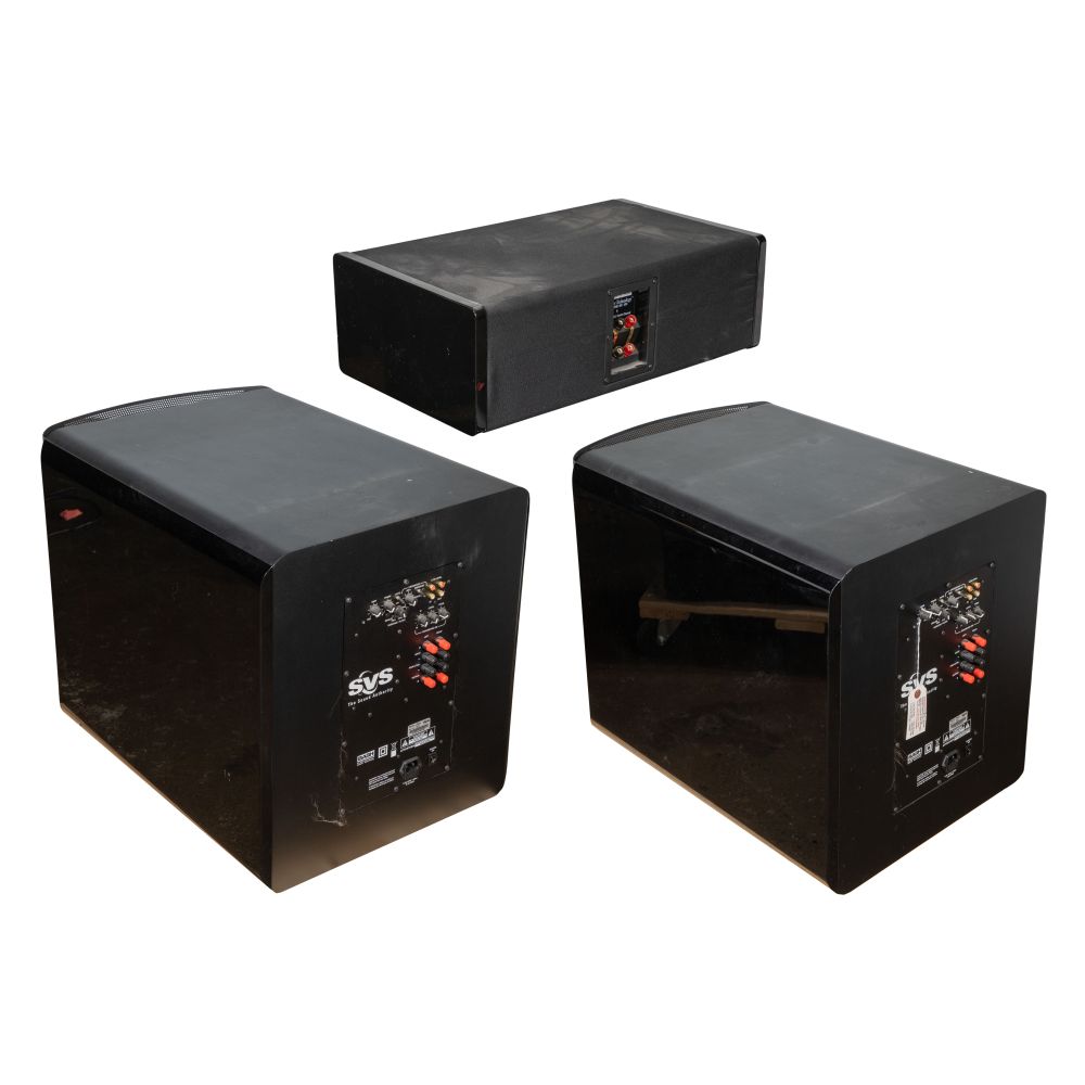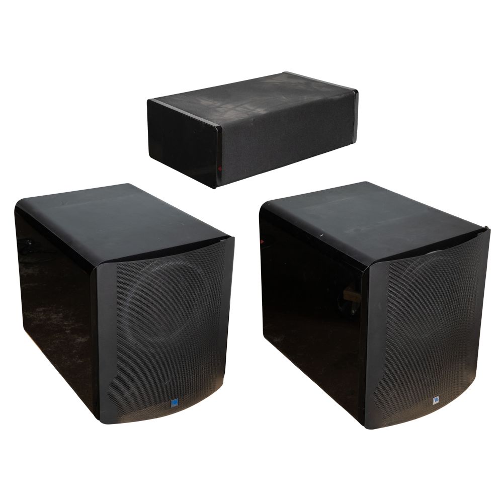 (3) total items including a pair of subwoofers having serial #PBX12P129071666 and #PBX12P129071667; together with a Definitive Technology CLR-2002 subwoofer, serial #KAIA1008HA25249