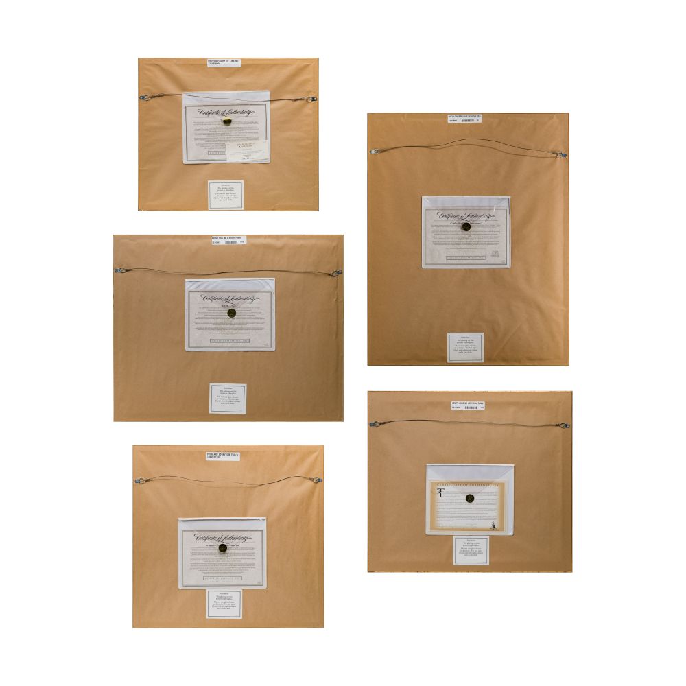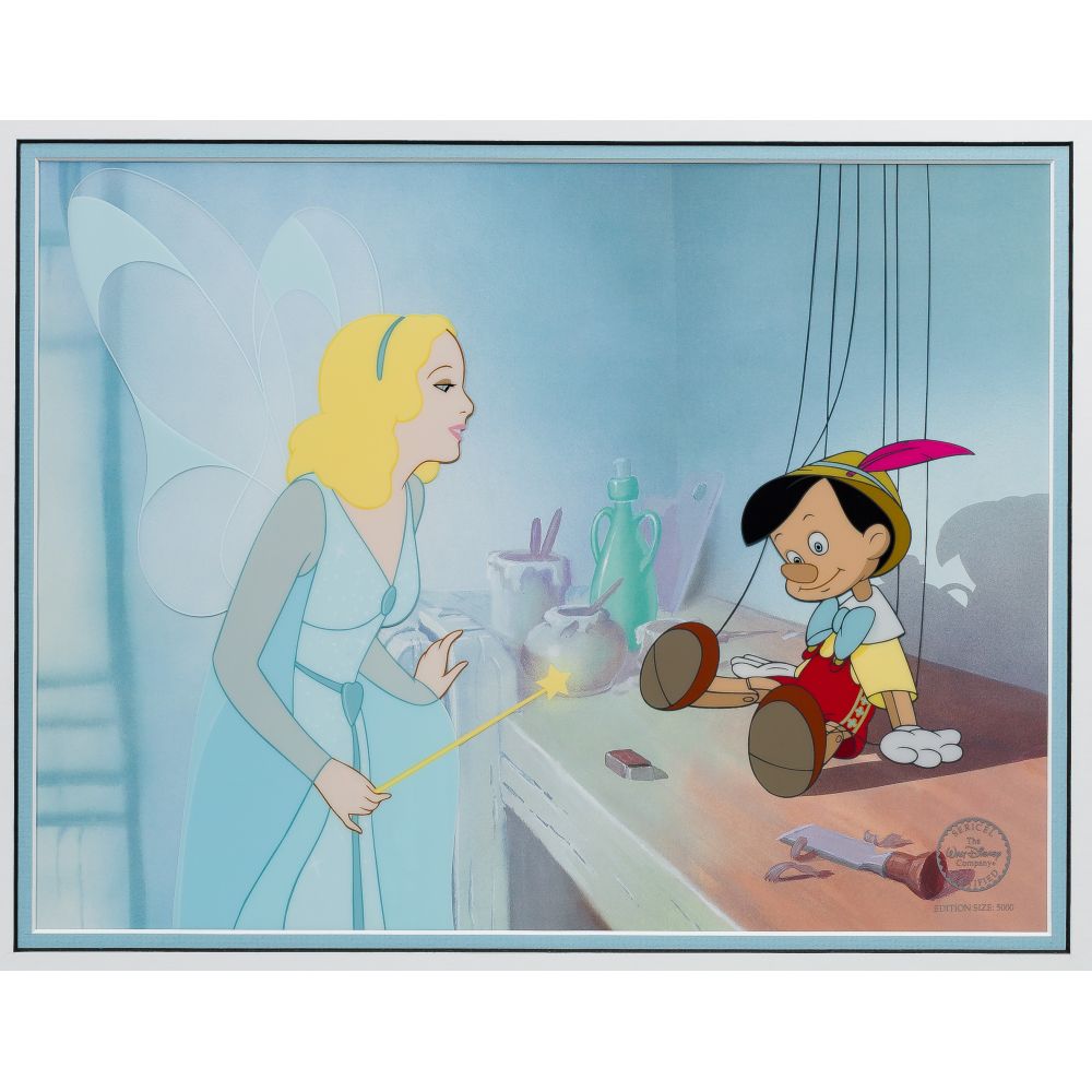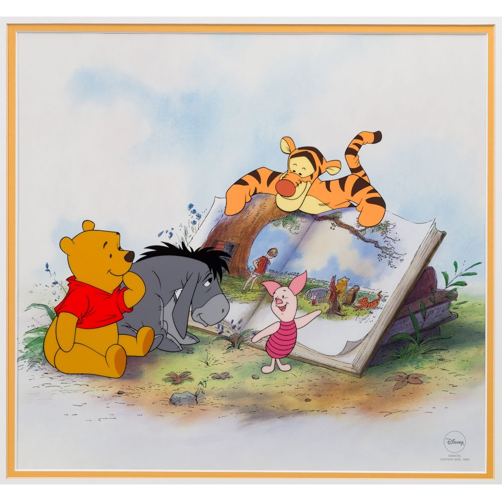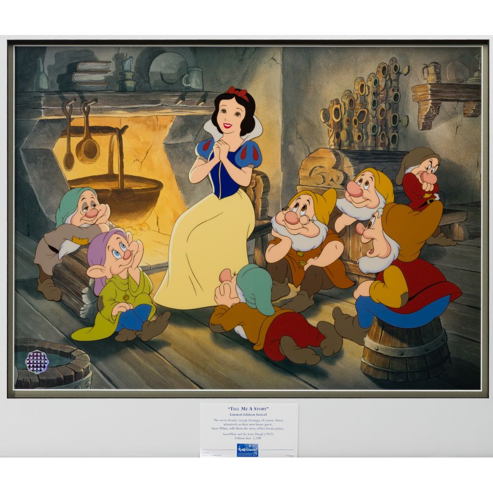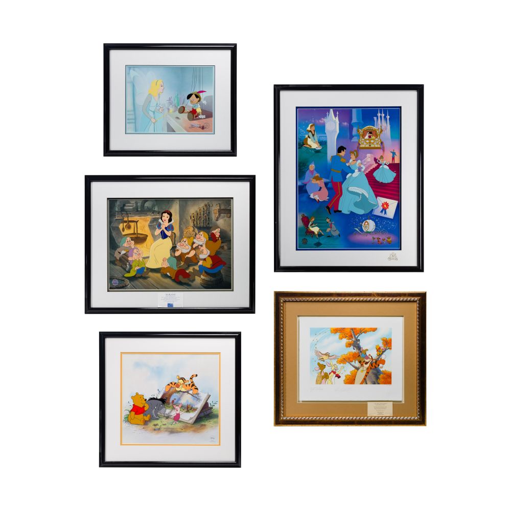 (5) items including “The Gift of Life” from Pinocchio, “Story Time Too”, “My Very Own Family” from Winnie The Pooh, “Tell Me a Story” from Snow White and the 7 Dwarfs and “Cinderellas 50th Golden”, all framed and under acrylic, in original boxes, having COAs