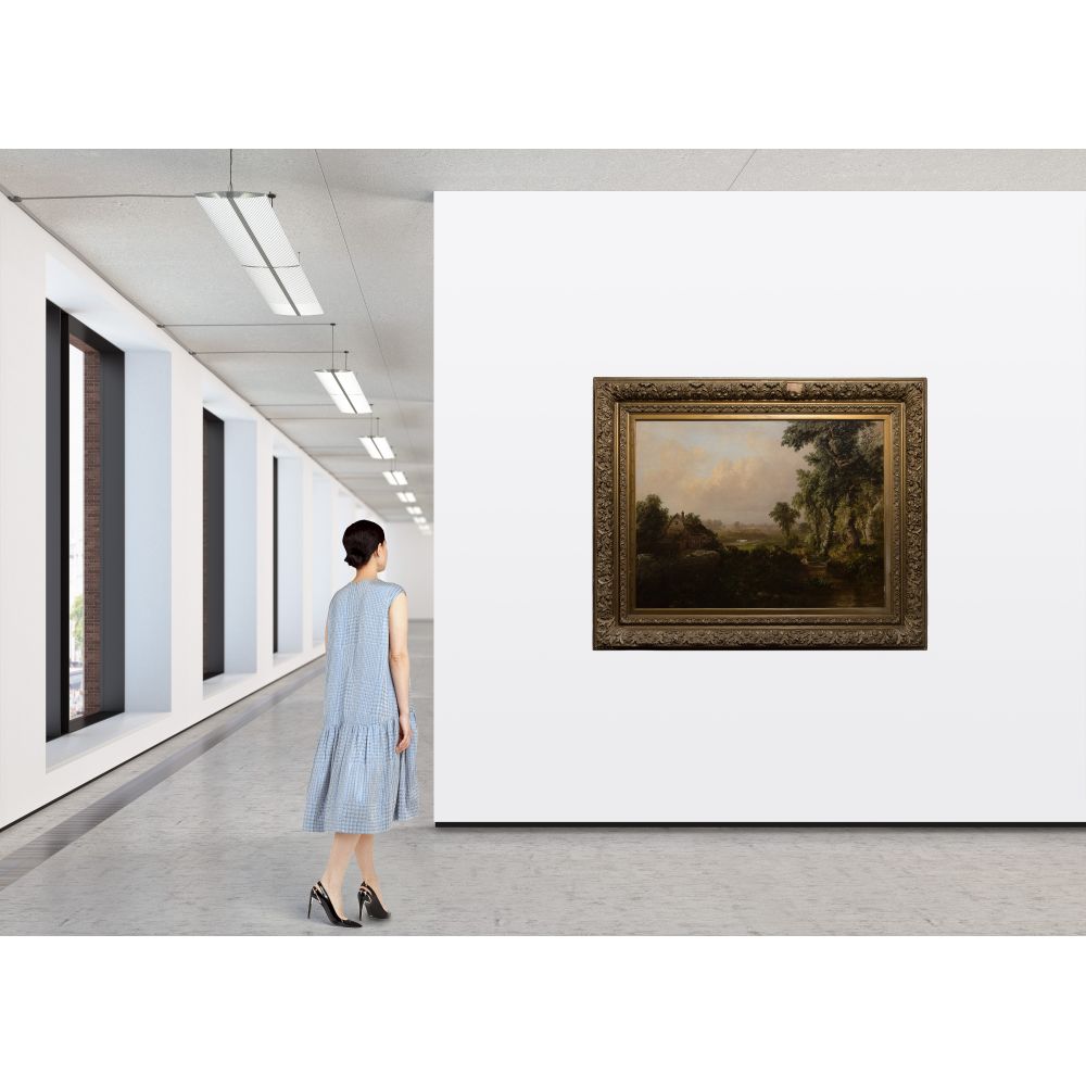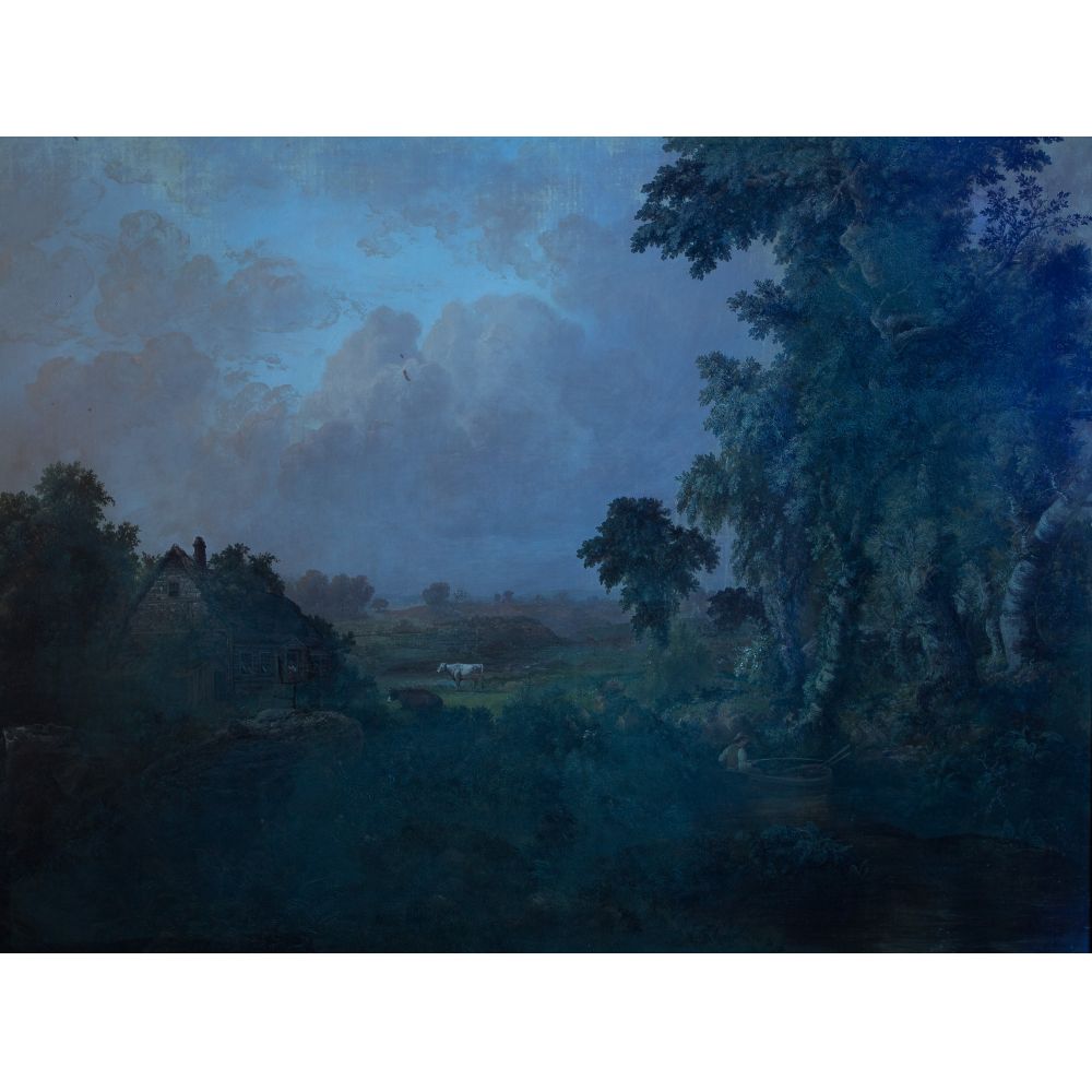 Condition: inspected under UV light, in-painting at a scrape in clouds upper left quadrant, a few small losses to paint near top and right edges, frame having light to moderate wear, chips and losses (some present and bagged), inspected under UV light, in-painting at a scrape in clouds upper left quadrant, a few small losses to paint near top and right edges, frame having light to moderate wear, chips and losses (some present and bagged)
