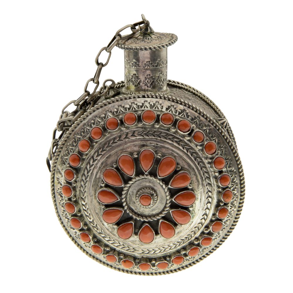 LOT #153 - Native American Marcella James Sterling Silver and Coral Canteen