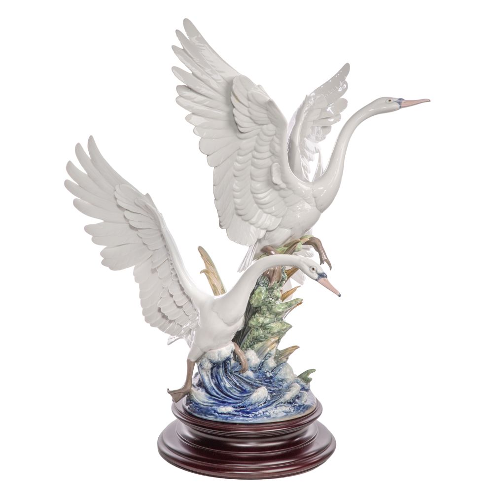 LOT #240 - Lladro #5912 “Swans Take Flight” Porcelain Figurine