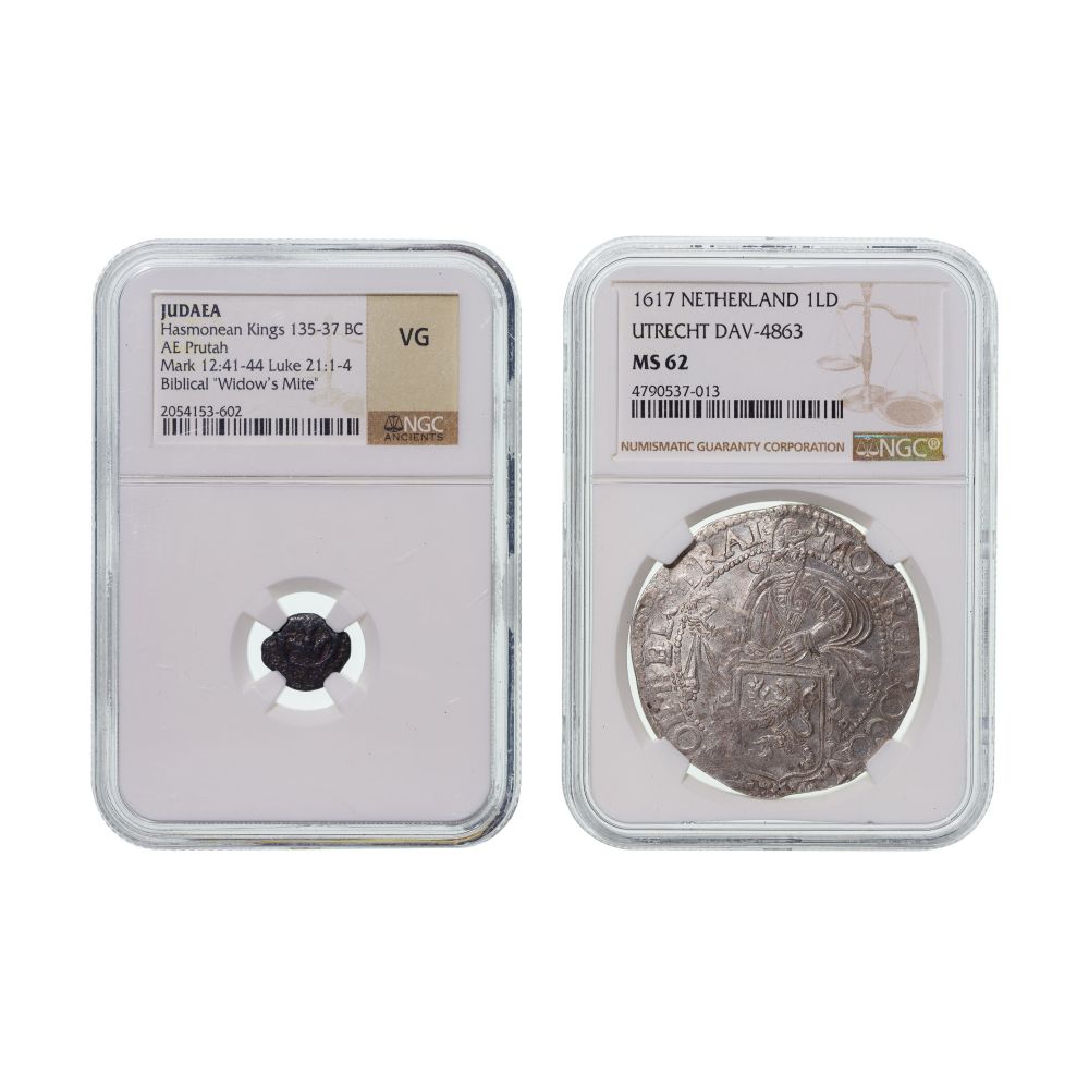 (2) coins including Judea Hasmonean Kings VG and 1617 Netherlands Utrecht Dav MS-62