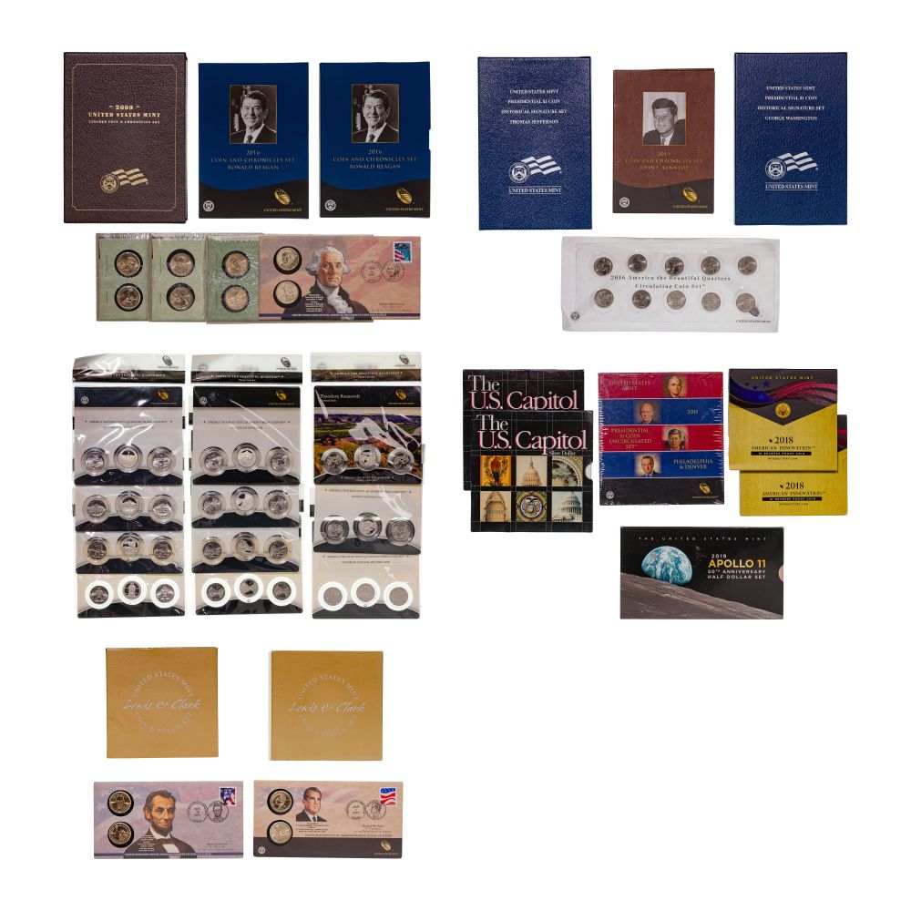 (32) items including Coin and Chronicles sets, US Capitol silver dollars, and America the Beautiful quarters