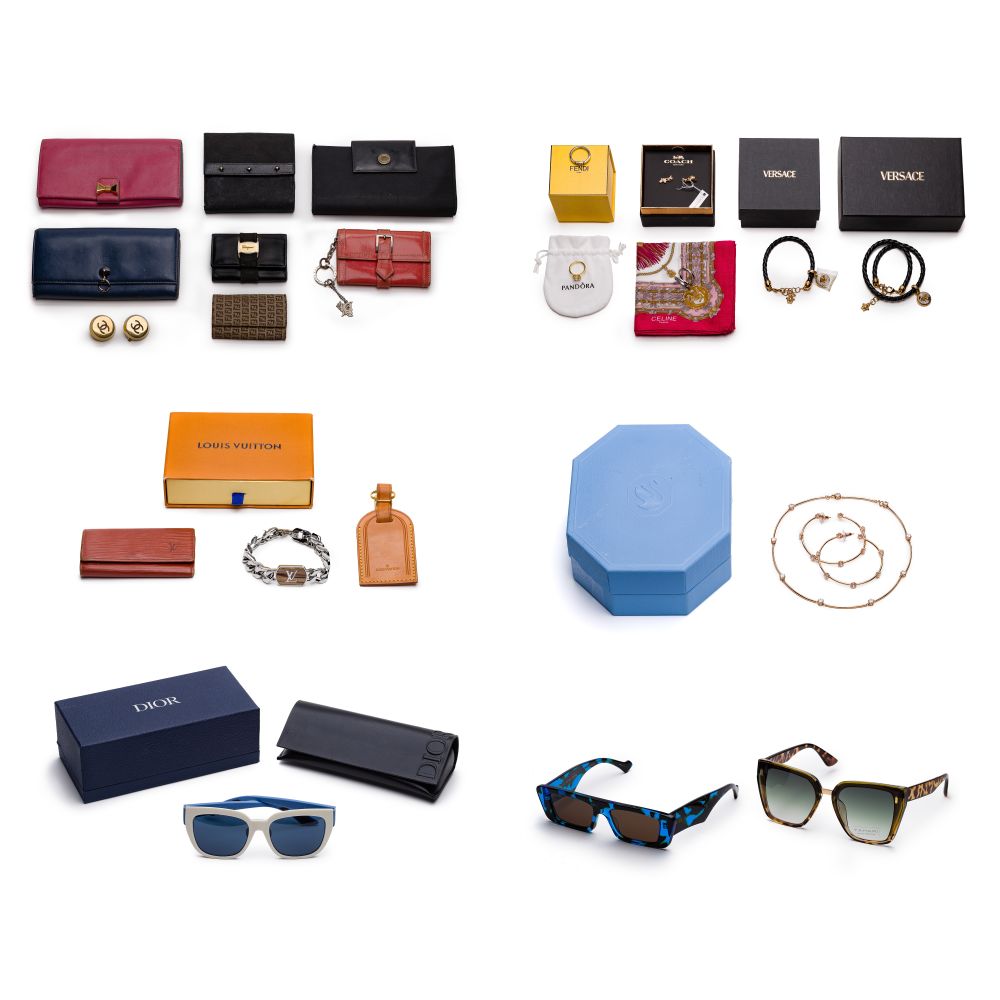 (20) items including a Louis Vuitton luggage tag, bracelet and key case as well as wallets, jewelry, sunglasses by designers Versace, Fendi, Gucci, Chanel and Burberry, some having boxes