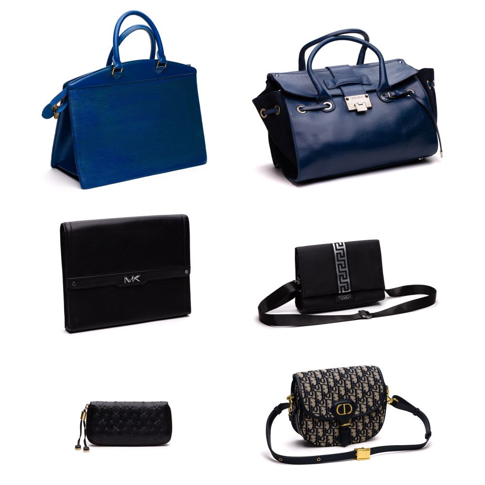 (6) items including a Louis Vuitton blue Epi leather having gold-tone hardware, dual rolled leather top handles, a zip-top closure and an interior slip pocket, Jimmy Choo Rosalie satchel as well as bags from designers Michael Kors, Versace and Dior