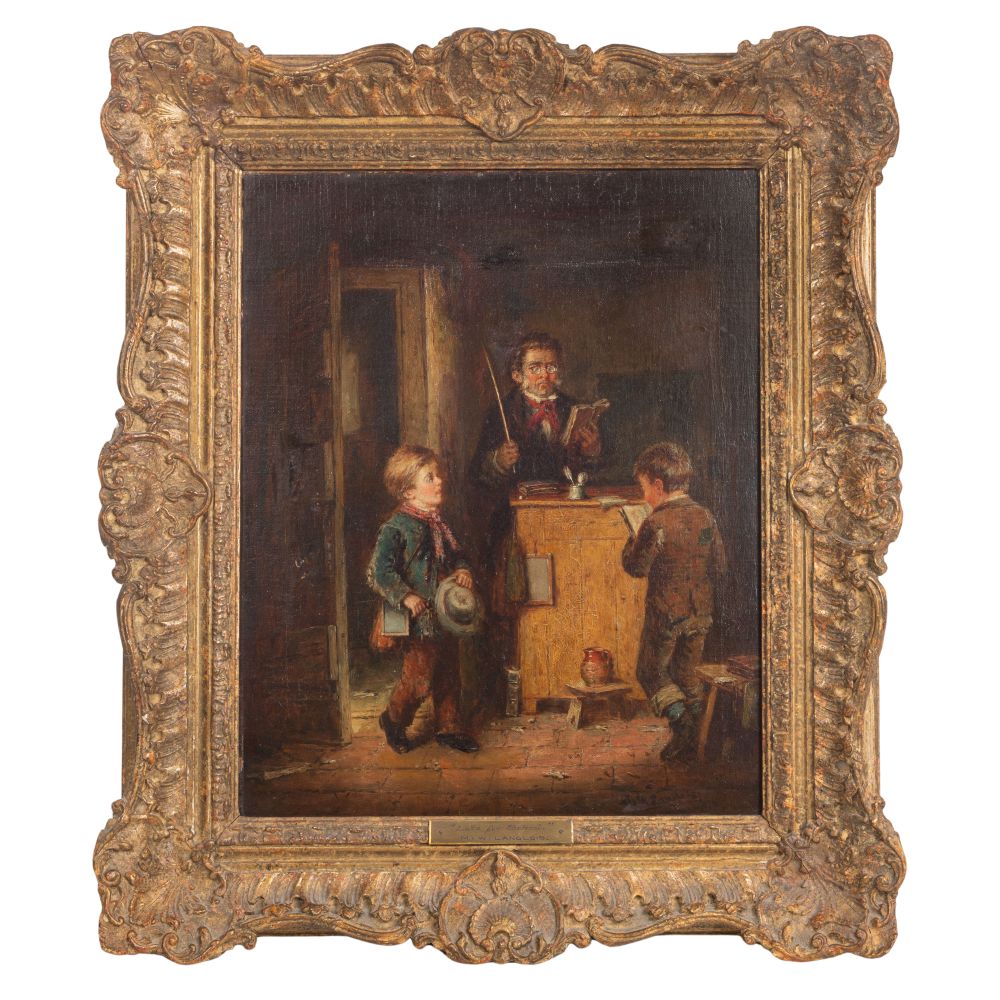 LOT #141 - Mark William Langlois (British, 1848-1924) “Late for School” Oil on Canvas on Hardboard