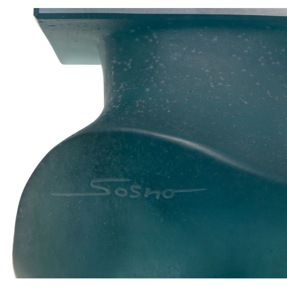 Undated, signed and #73/500, block head in teal pate de verre, tiny bubbles throughout