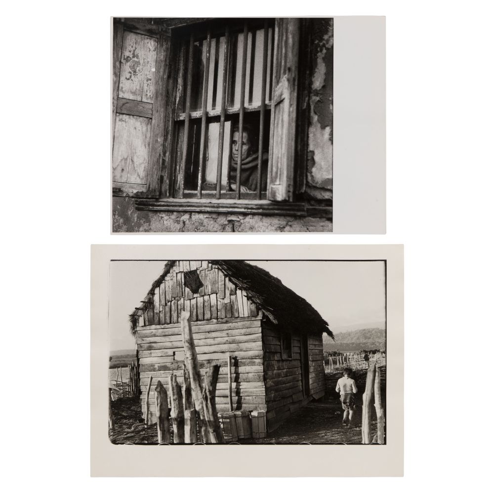 (2) items including a 1957 black and white photograph of a young boy near a shack and a 1963 black and white photograph of a woman looking out a barred window, stamped and dated verso, also marked Magnum