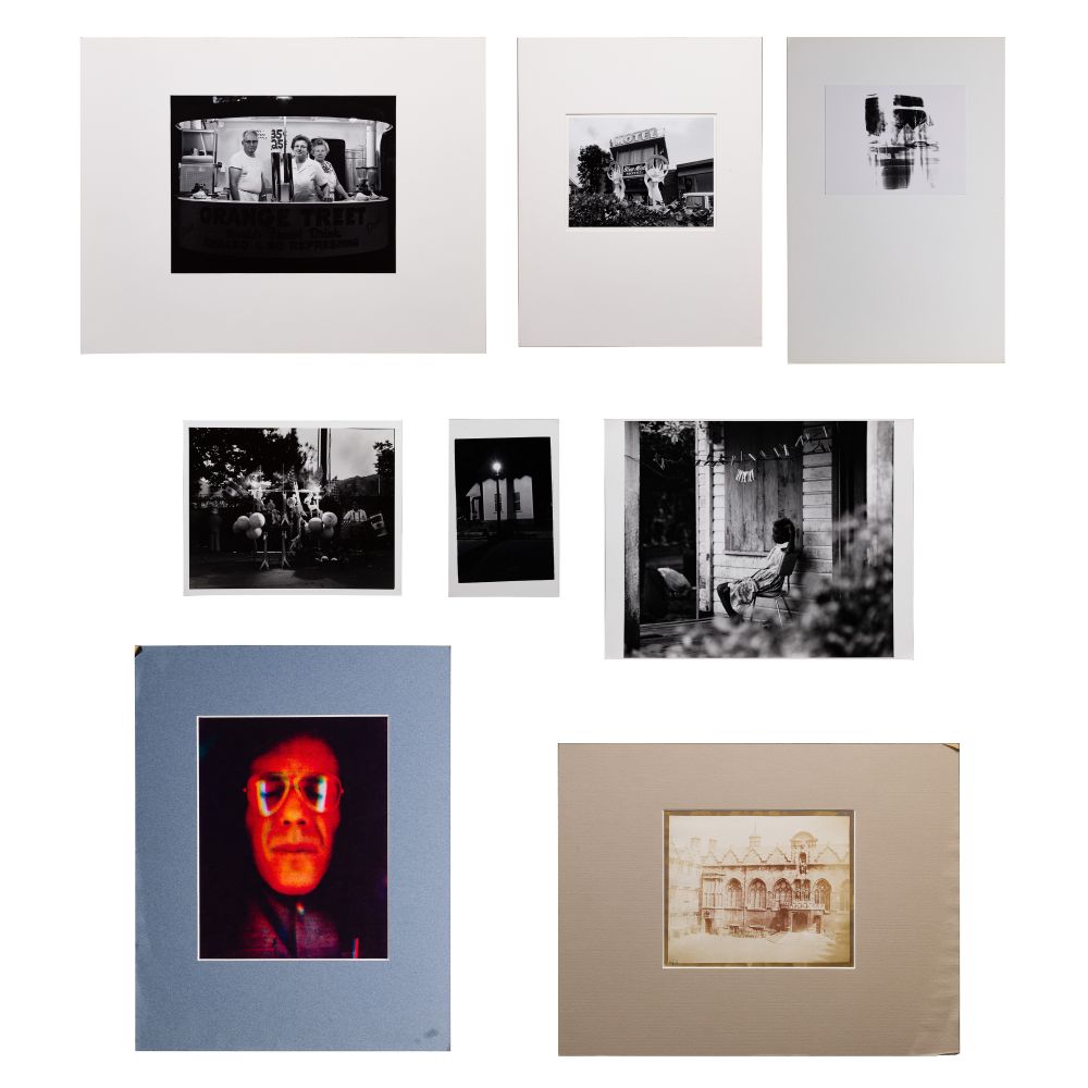 (8) total items in black and white / color of various sizes and subjects including a 1970 “Blue Mist Hotel” stamped “Luis Medina”; together with a salt print of Oxford attributed to Phillip Henry Delamonte