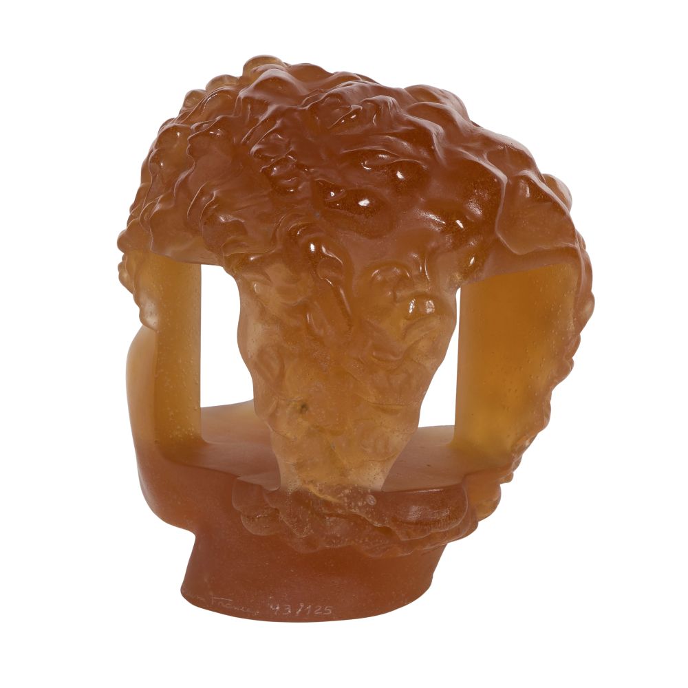 2001, signed and #43/125, “Tete aux Quatre Vent” in amber pate de verre
