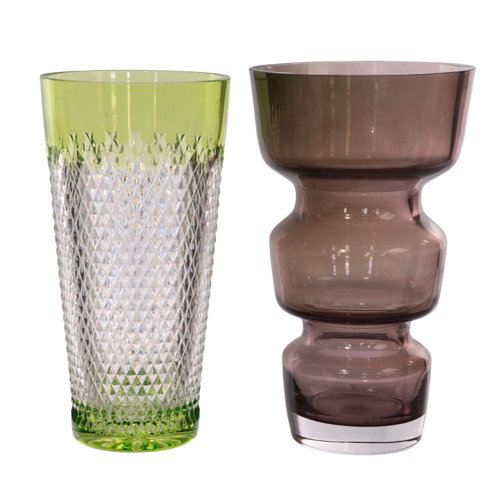 (2) total items including Prestige light green ice bucket in the Alana pattern; together with an Orrefors Martti Rytkonen purple crystal vase