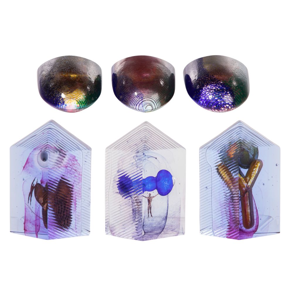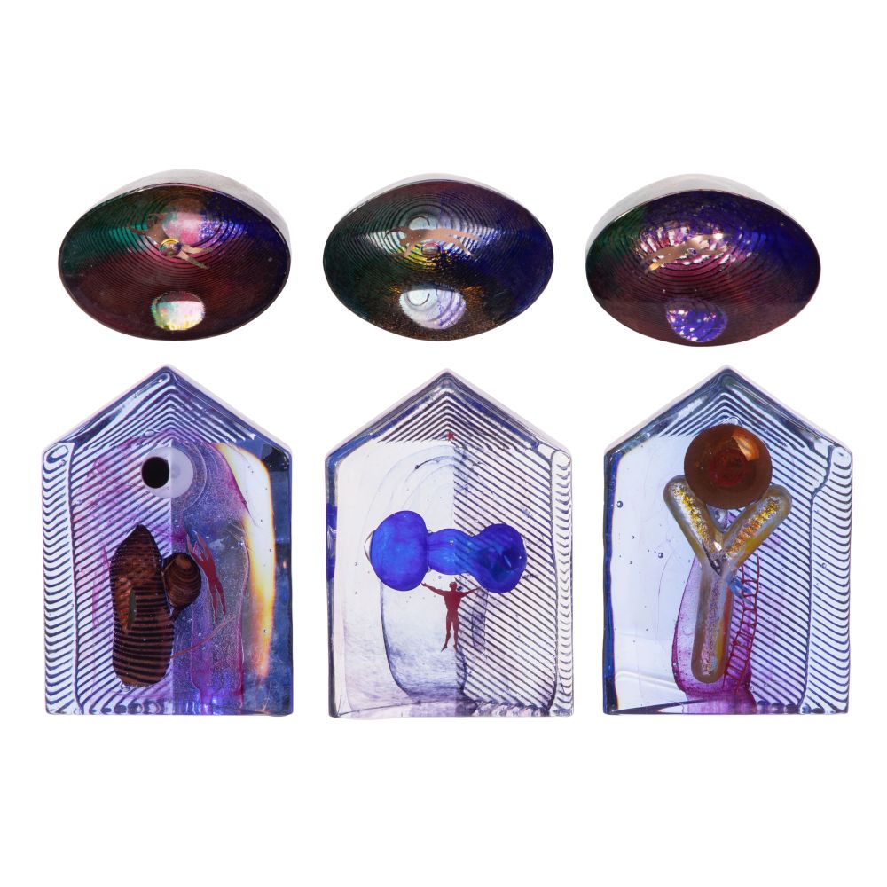(6) items including (3) sculptures in glass block and (3) paperweights, all signed