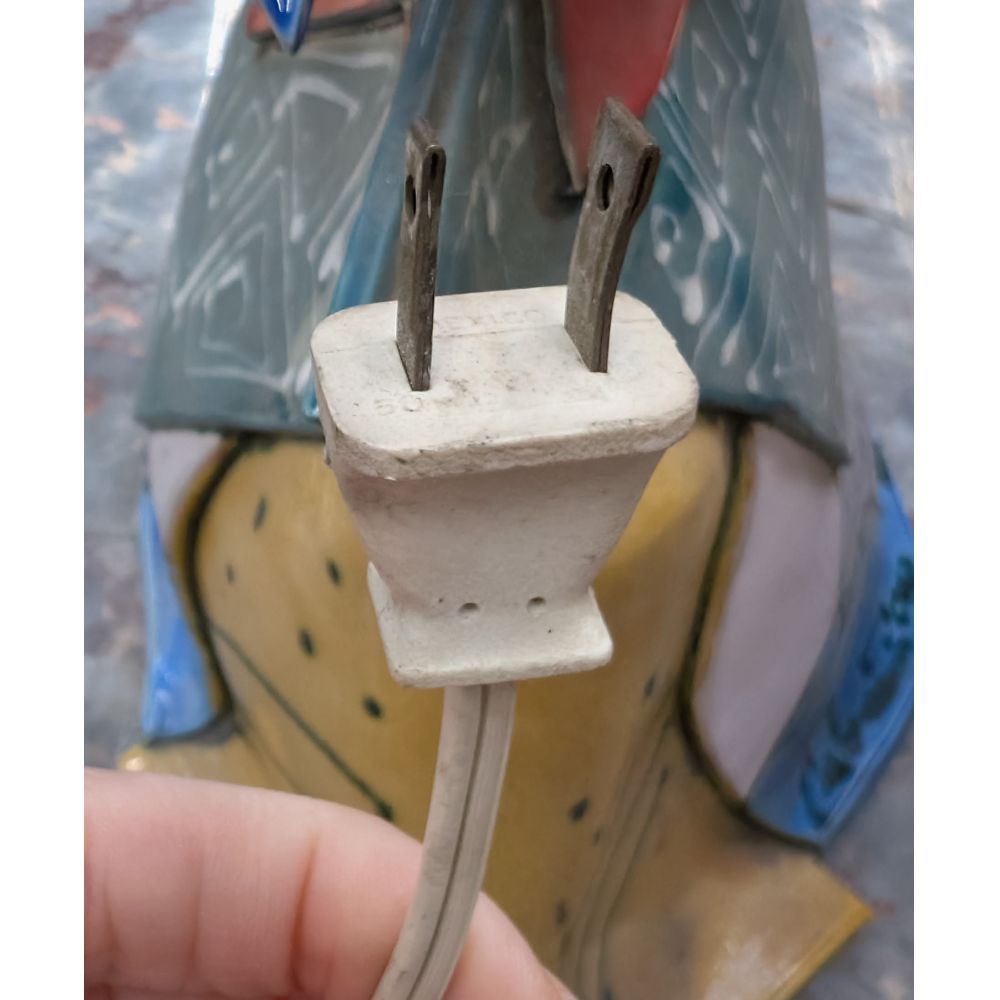 Condition: missing earrings, red scarf having crack, light dirt accumulation, base having crack, working when tested, not including light bulb, missing earrings, red scarf having crack, light dirt accumulation, base having crack, working when tested, not including light bulb