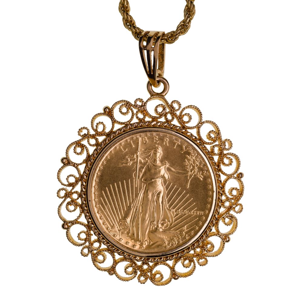 1986 $25 Gold Coin Pendant in 14k Bail on 14k Necklace