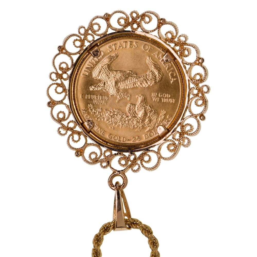 LOT #241 - 1986 $25 Gold Coin Pendant in 14k Bail on 14k Necklace