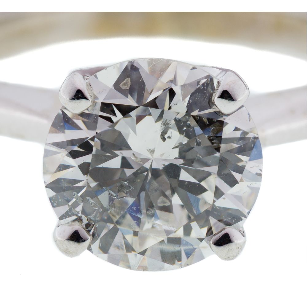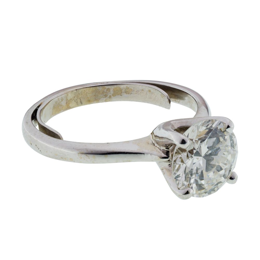 A solitaire setting having a round cut diamond weighing approximately 2.42 carats (8.76 x 5.18mm), I clarity, G/H color, no fluorescence noted (unmarked 14k)