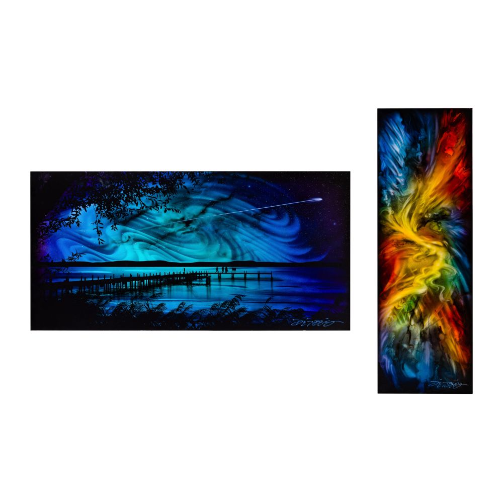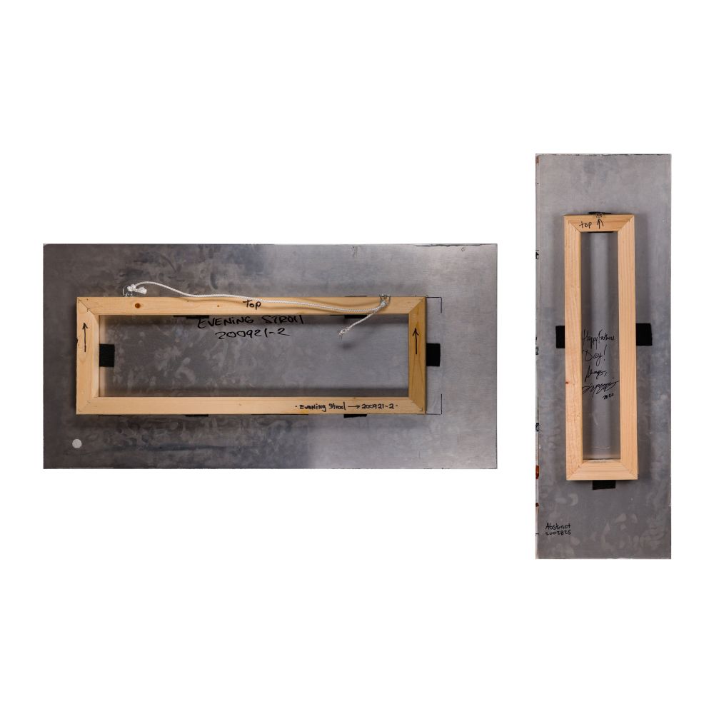 (2) signed items including “Evening Stroll” and “Happy Father’s Day!”, artist annotations verso including titles, “Happy Father’s Day!” signed again verso, on metal panels mounted to wood stretchers