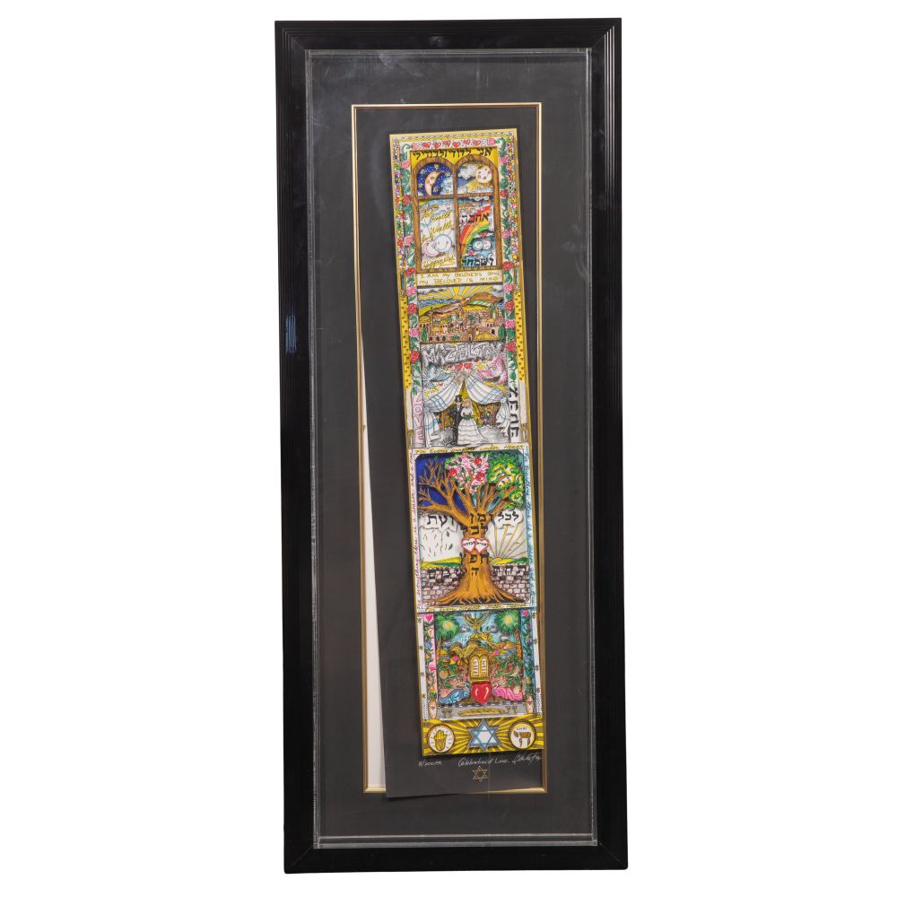 2000, signed, #8/200, whimsical imagery having embellishments and symbolic scenes including Judaica and wedding motifs, in an acrylic case and wood frame