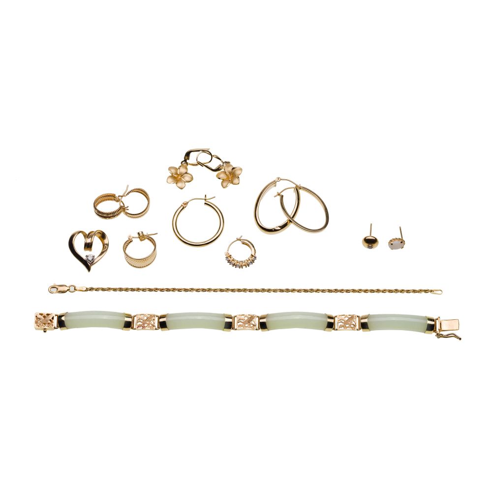 LOT #224 - 14k Yellow Gold Jewelry Assortment