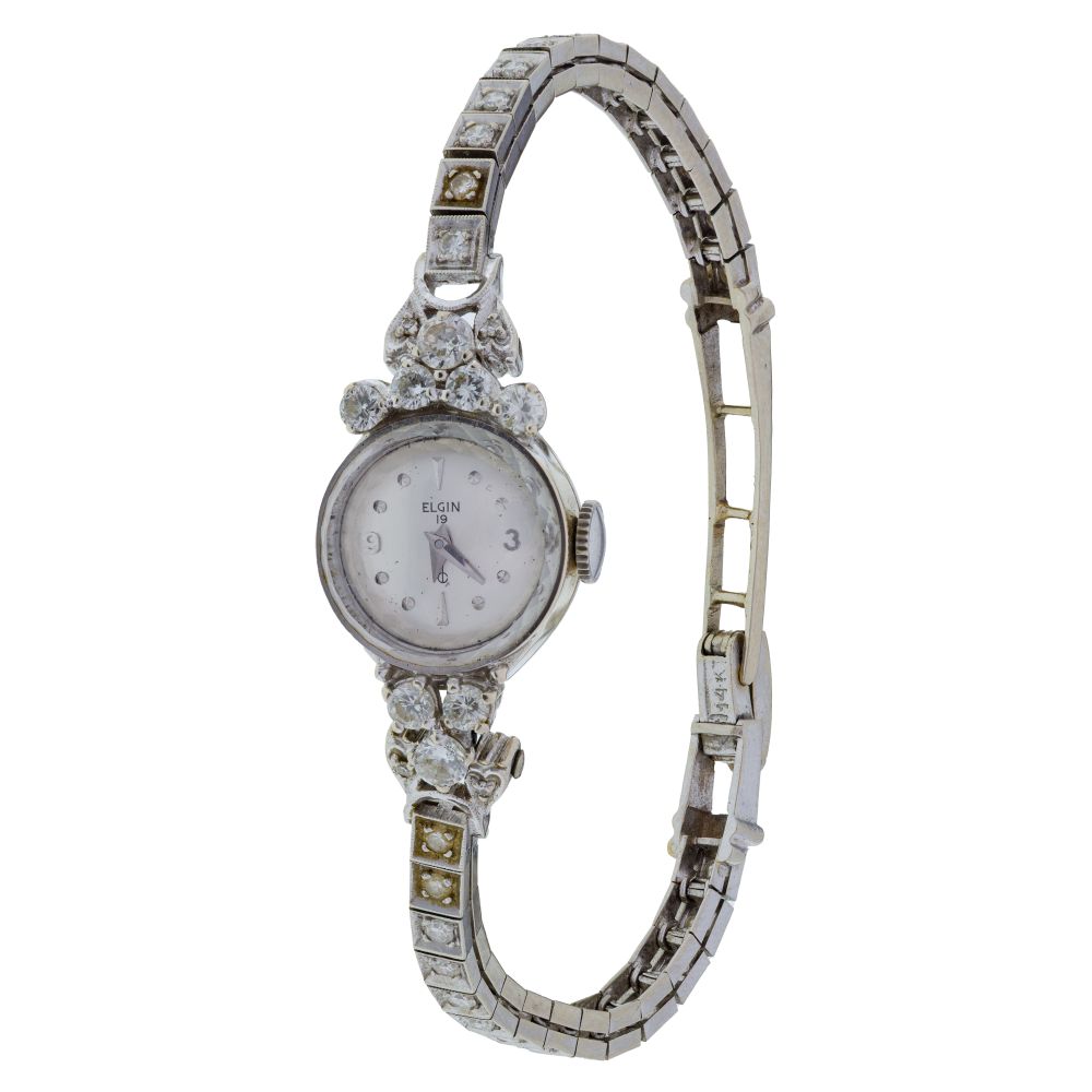 LOT #251 - 14k White Gold and Diamond Case and Band Wristwatch