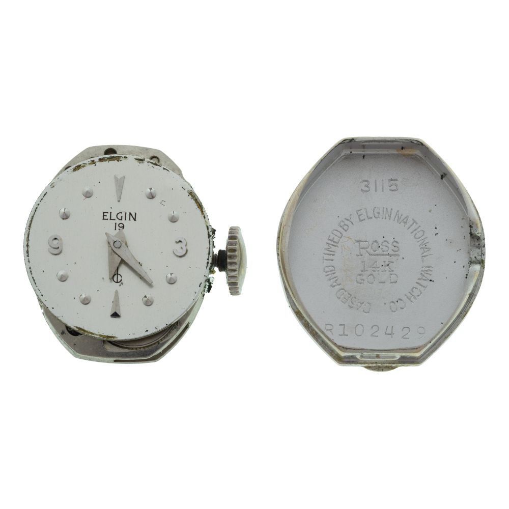 Weight: 14k gold: 11.70 dwts. (total including crystal and movement)