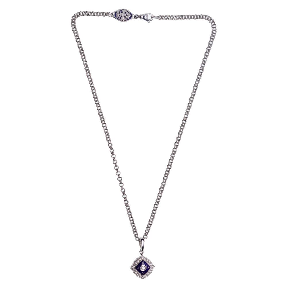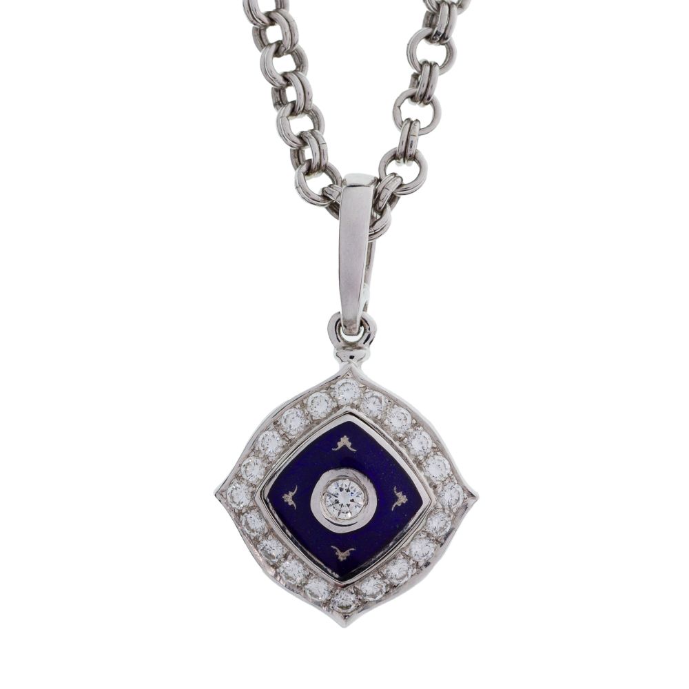Faberge 18k White Gold, Enamel and Diamond Pendant on Necklace