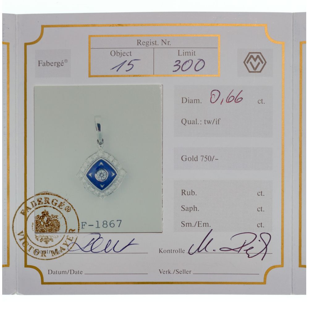 LOT #236 - Faberge 18k White Gold, Enamel and Diamond Pendant on Necklace