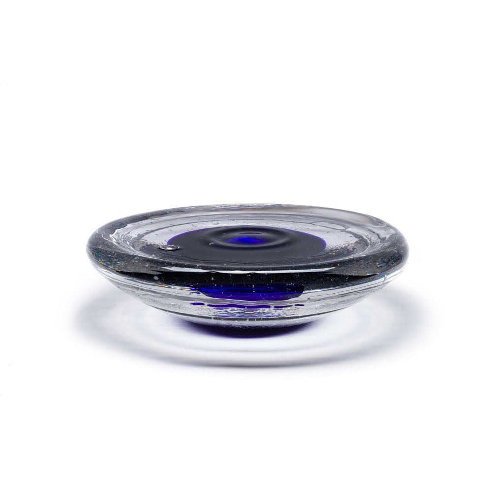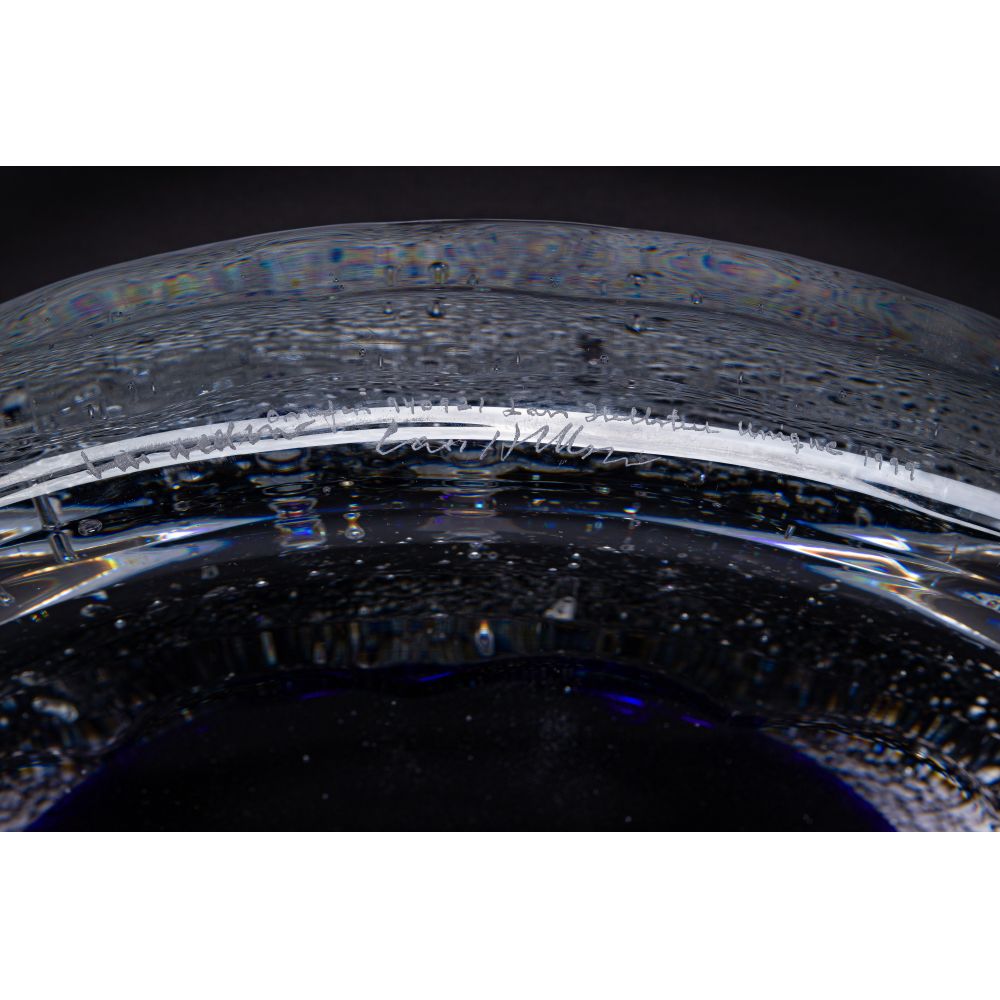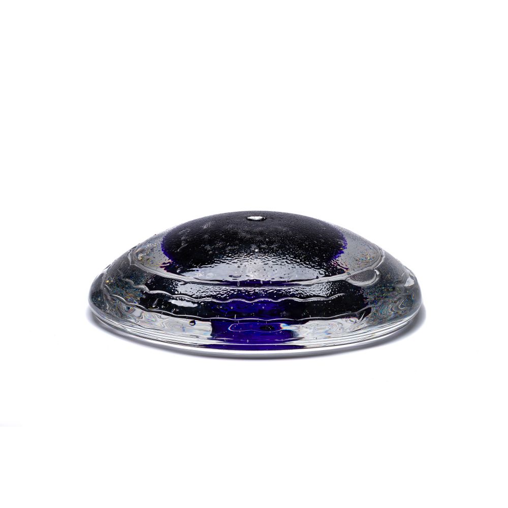 1999, illegibly signed, having a cobalt center and dichroic elements, impressed wavy bands and a conical shape