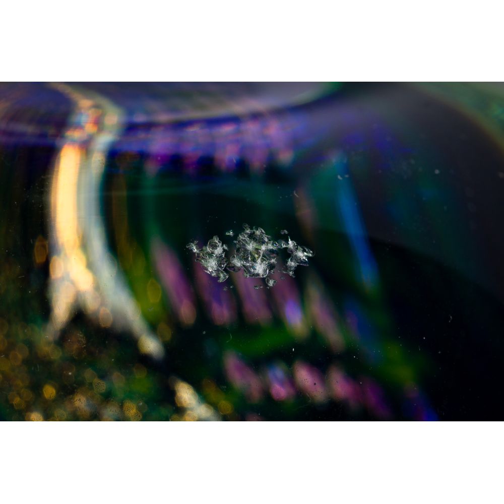 (2) 2002, signed, elongated forms having three separations at top and an abstract interior of millefiori canes and dichroic elements
