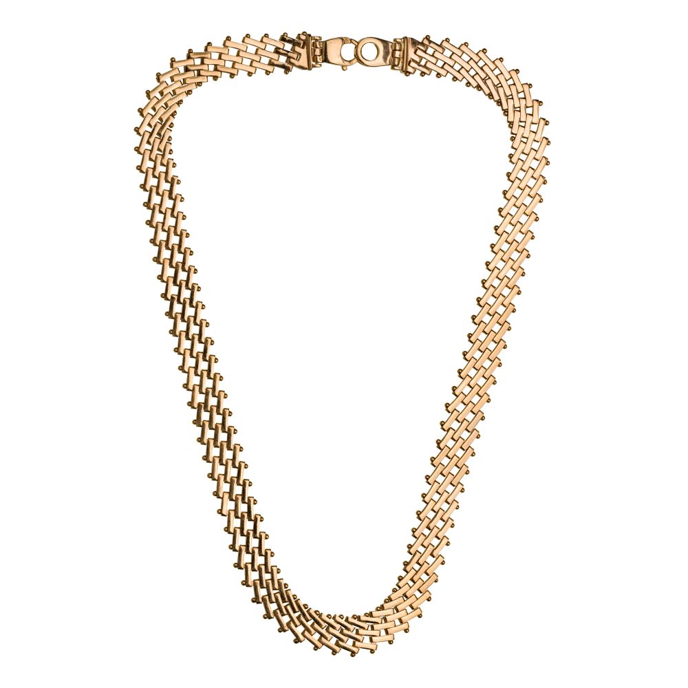 A fantasy style link necklace, 0.375-inch wide (marked “14k” on clasp)