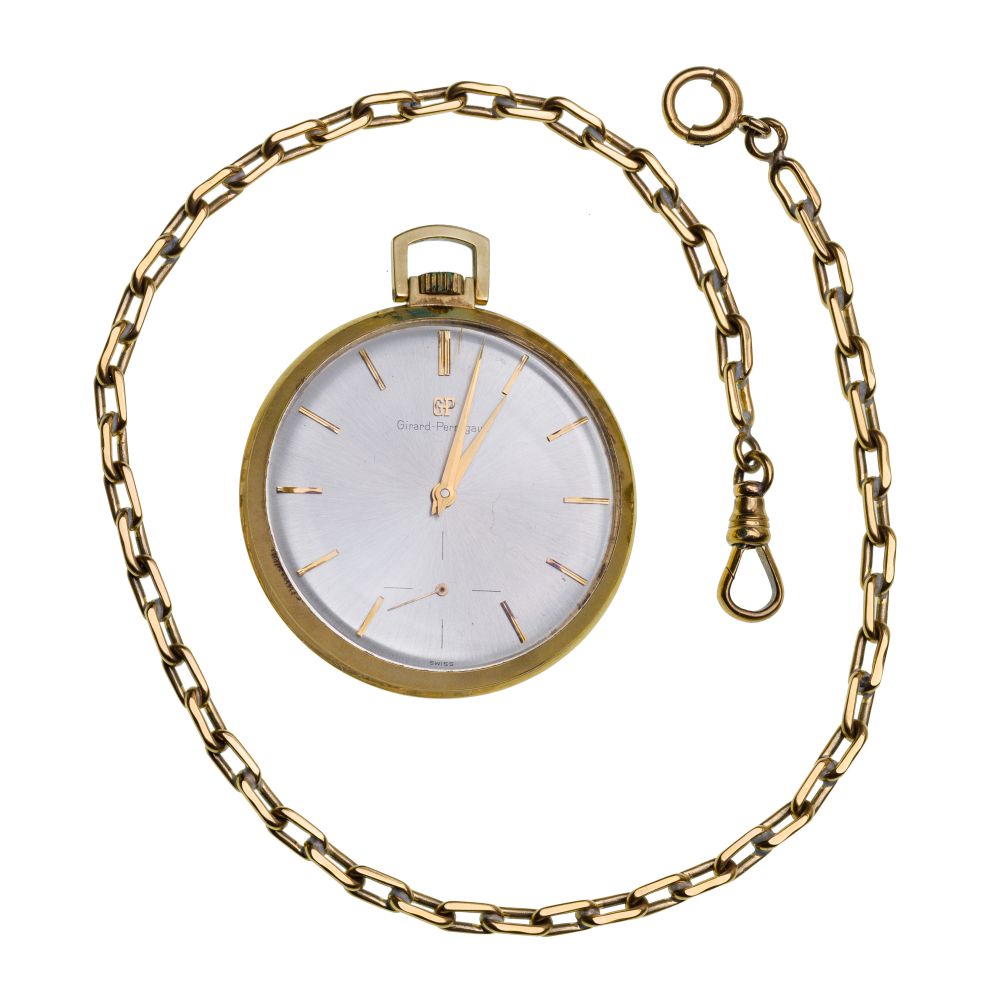 Girard-Perregaux 14k Yellow Gold Open Face Pocket Watch and Chain