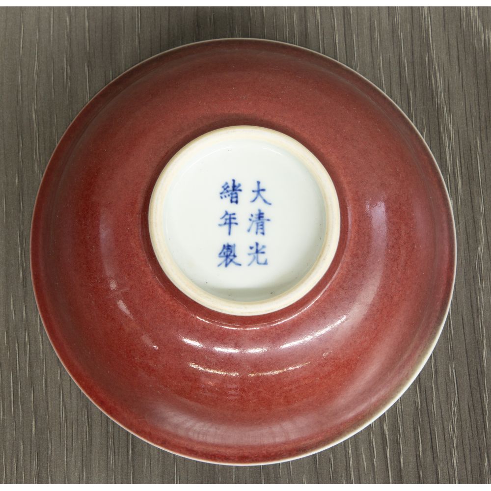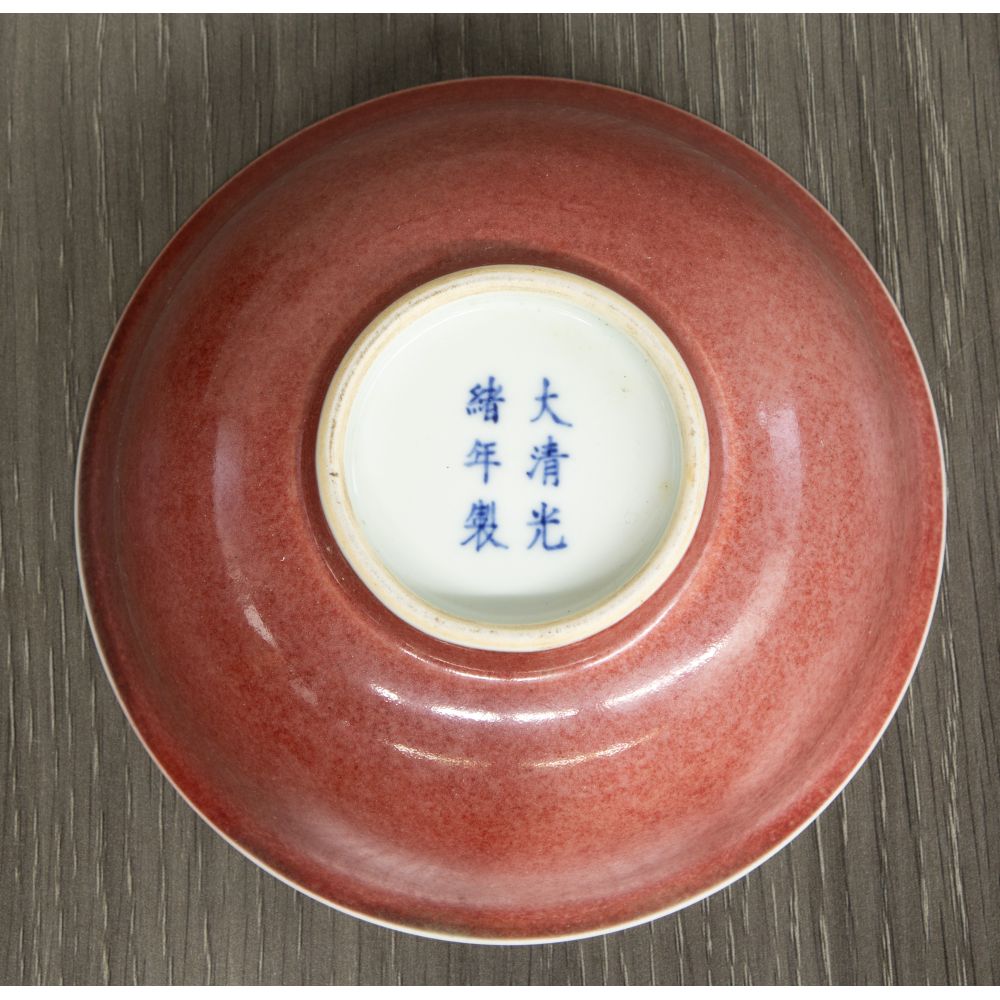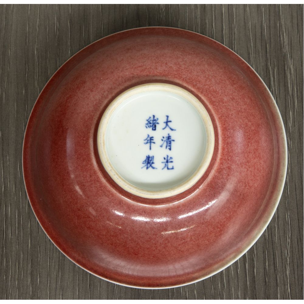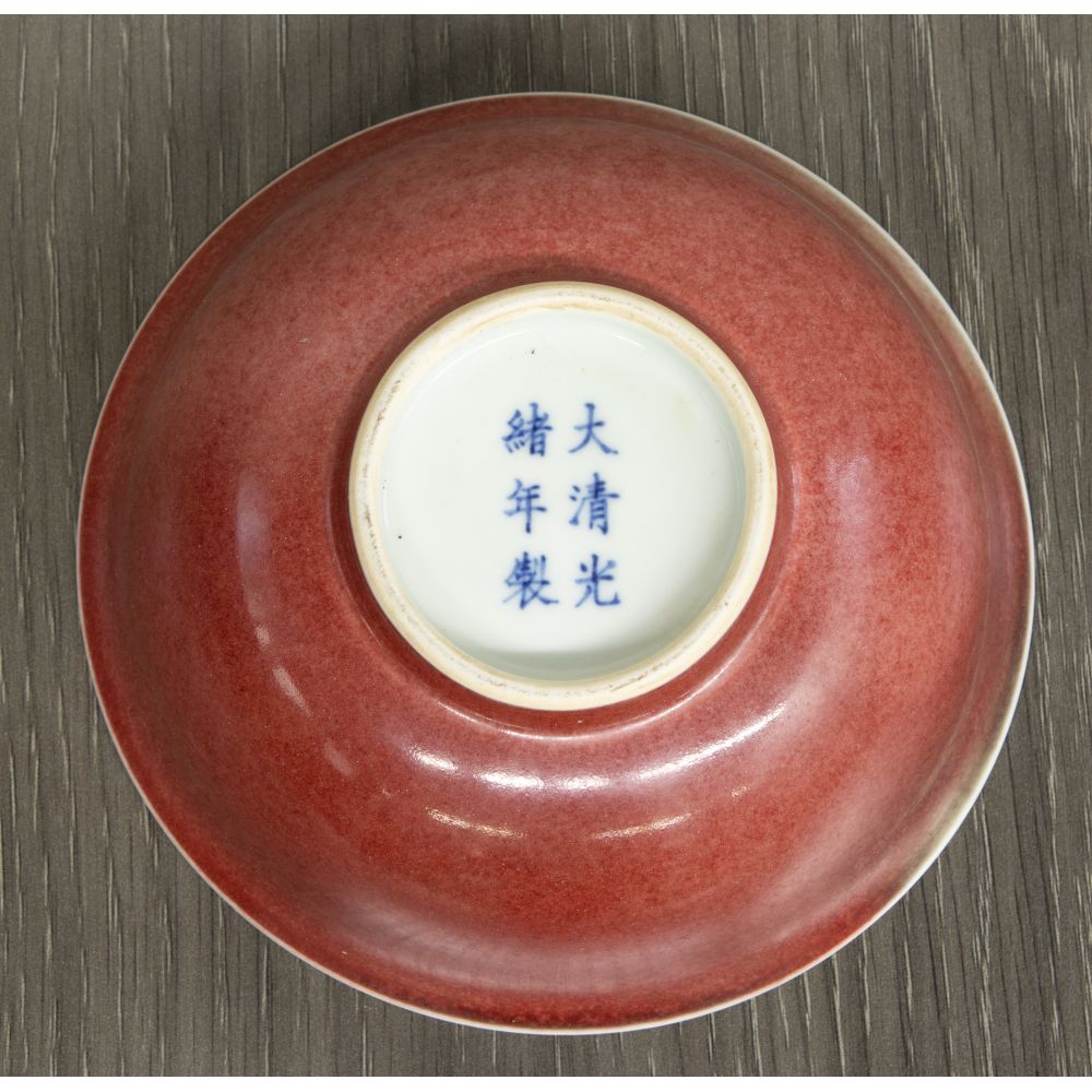 (6) items, all having oxblood red glaze overall except rims and feet, including (4) matching having underglaze blue 6-character Guangxu marks underside and (2) matching low bowls having underglaze blue archaic script Guangxu seal marks underside