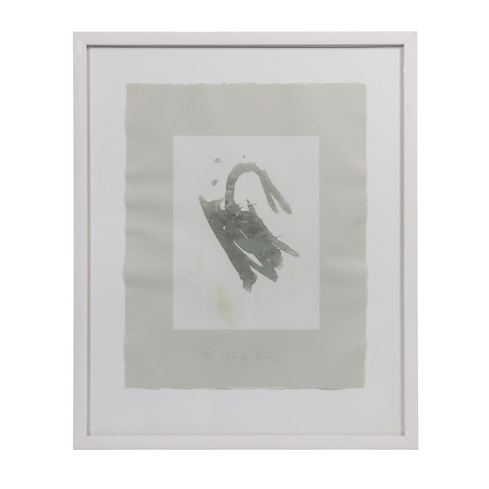 Undated, pencil signed, #44/75 lower gray margin, abstract lithographic image of a swan on white aquatint ground (within plate line) on gray wove paper float mounted behind glass in a painted wood frame